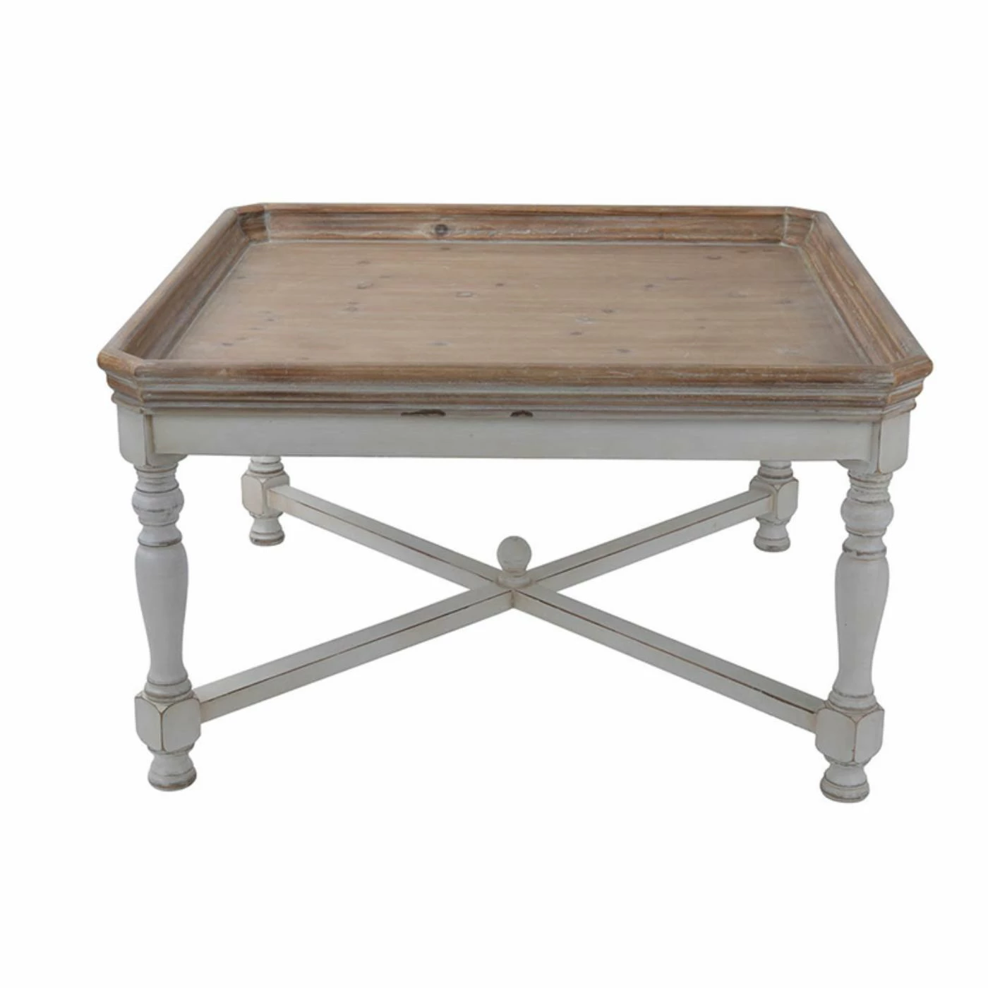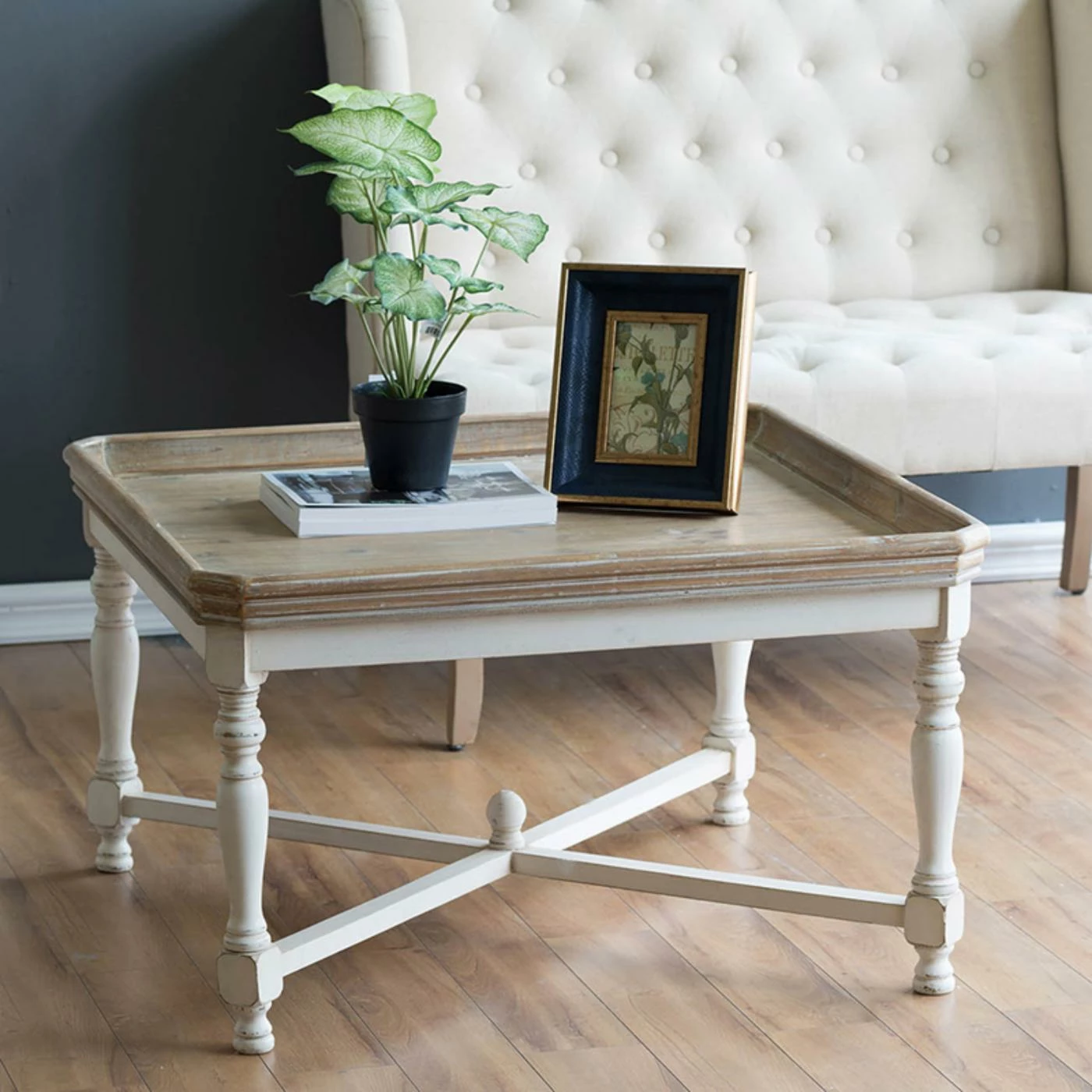 Deck out your space in farmhouse style with the natural beauty of the A and B Home Tray Table. This table boasts an attractive weathered finish that gives it rustic appeal and lathe-turned legs for added charm. It’s made of a sturdy combination of fir and engineered wood for a look that’s made to last.