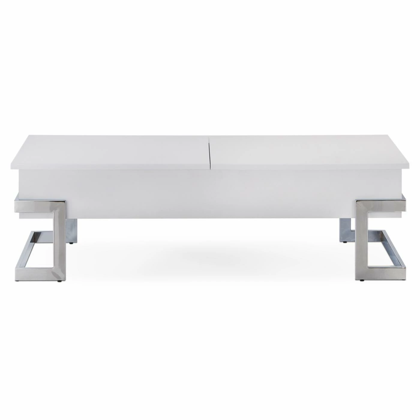 Packed with convenient functionality, the ACME Calnan Lift Top Coffee Table delivers plenty of storage and adjustable surface space in a chic and glamour silhouette. Featuring a rectangular design with open geometric metal legs, this coffee table is offered in your choice of available finish options. A lift-up tray and sliding top reveal interior storage that lets you keep your living area neat and organized.