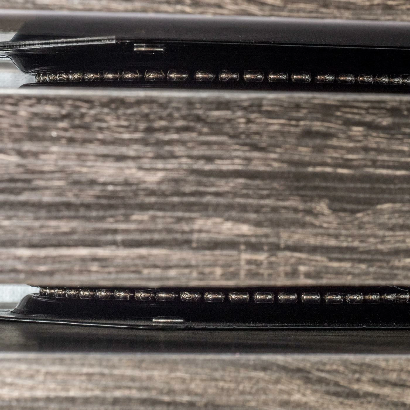 - Black wood grain finish