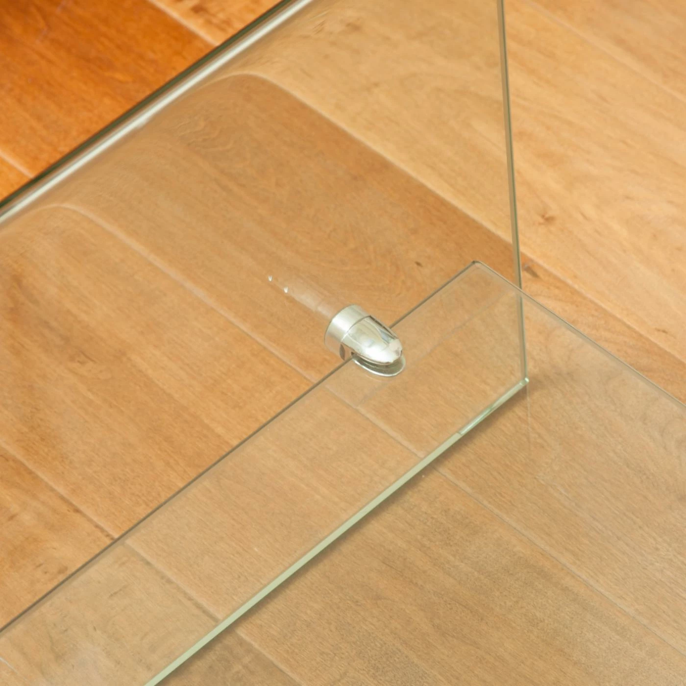The simple form of the Ramona Glass Coffee Table lets the crystal-clear appeal of the glass speak for itself. Thick sheets of tempered glass create the body and provide you with a wide top and lower shelf. Each piece of glass has a beveled and smooth edge for safety, and the tempered glass used in the design offers shatter-resistant strength for daily use. The sophisticated look of this table is accented by nothing more than the aluminum brackets holding the body together. It’s a stunning piece that you won’t find in anyone else’s home.