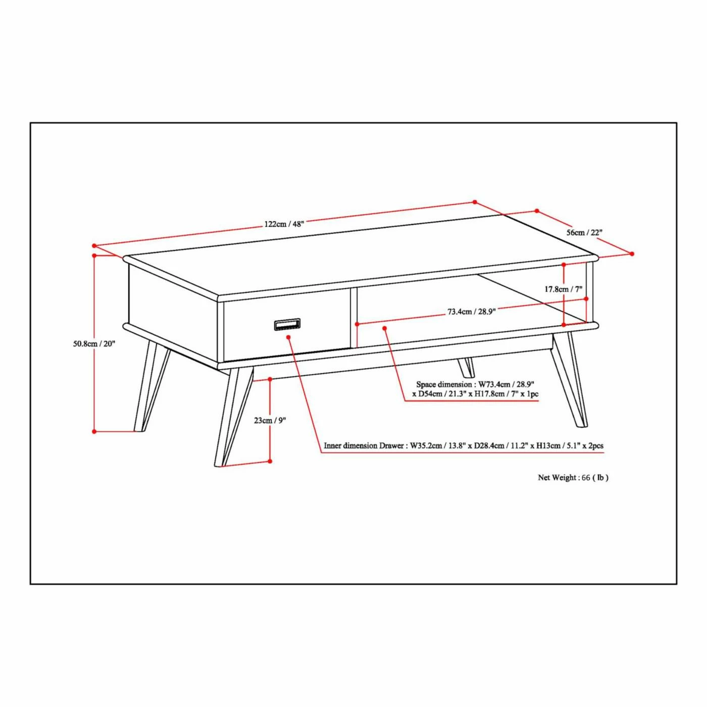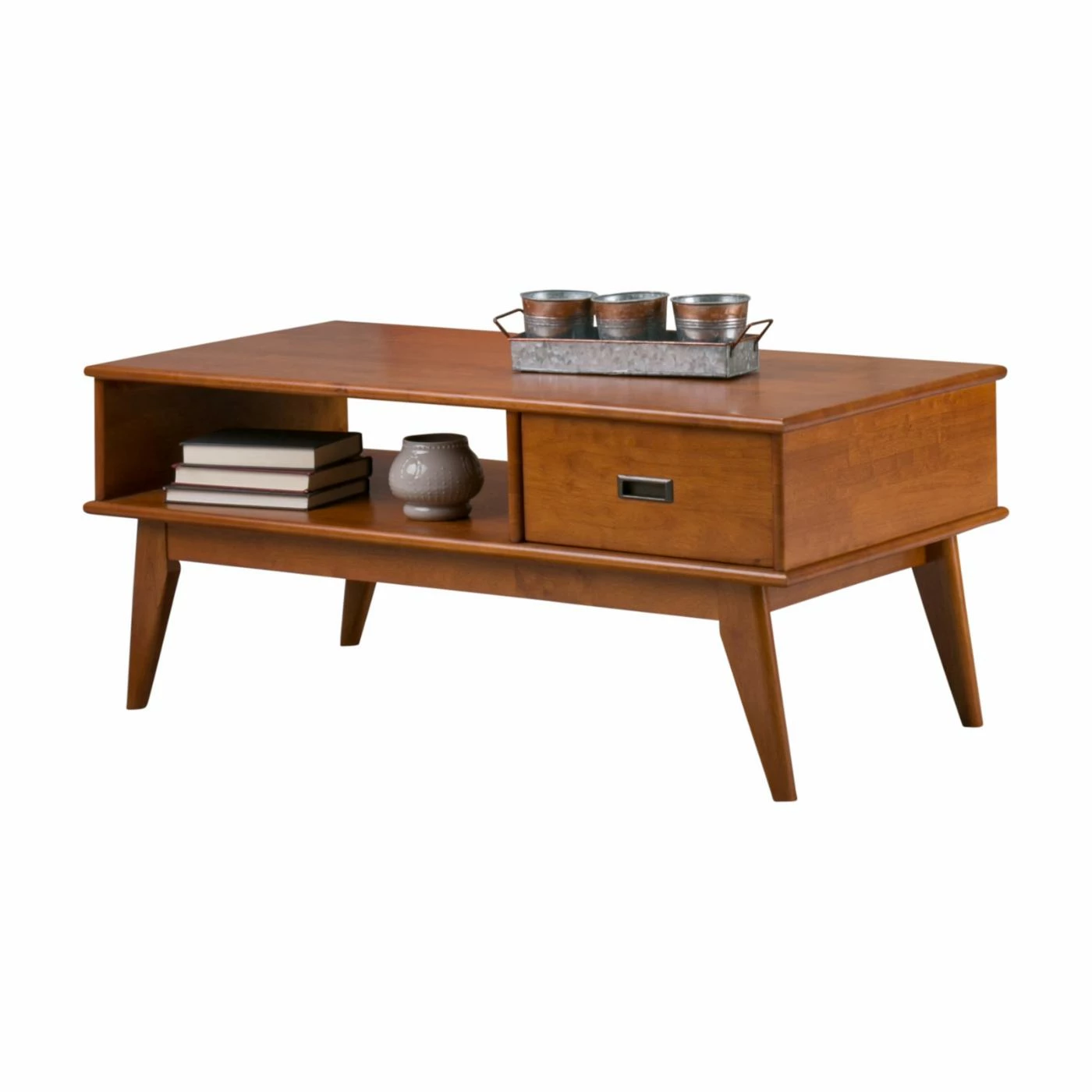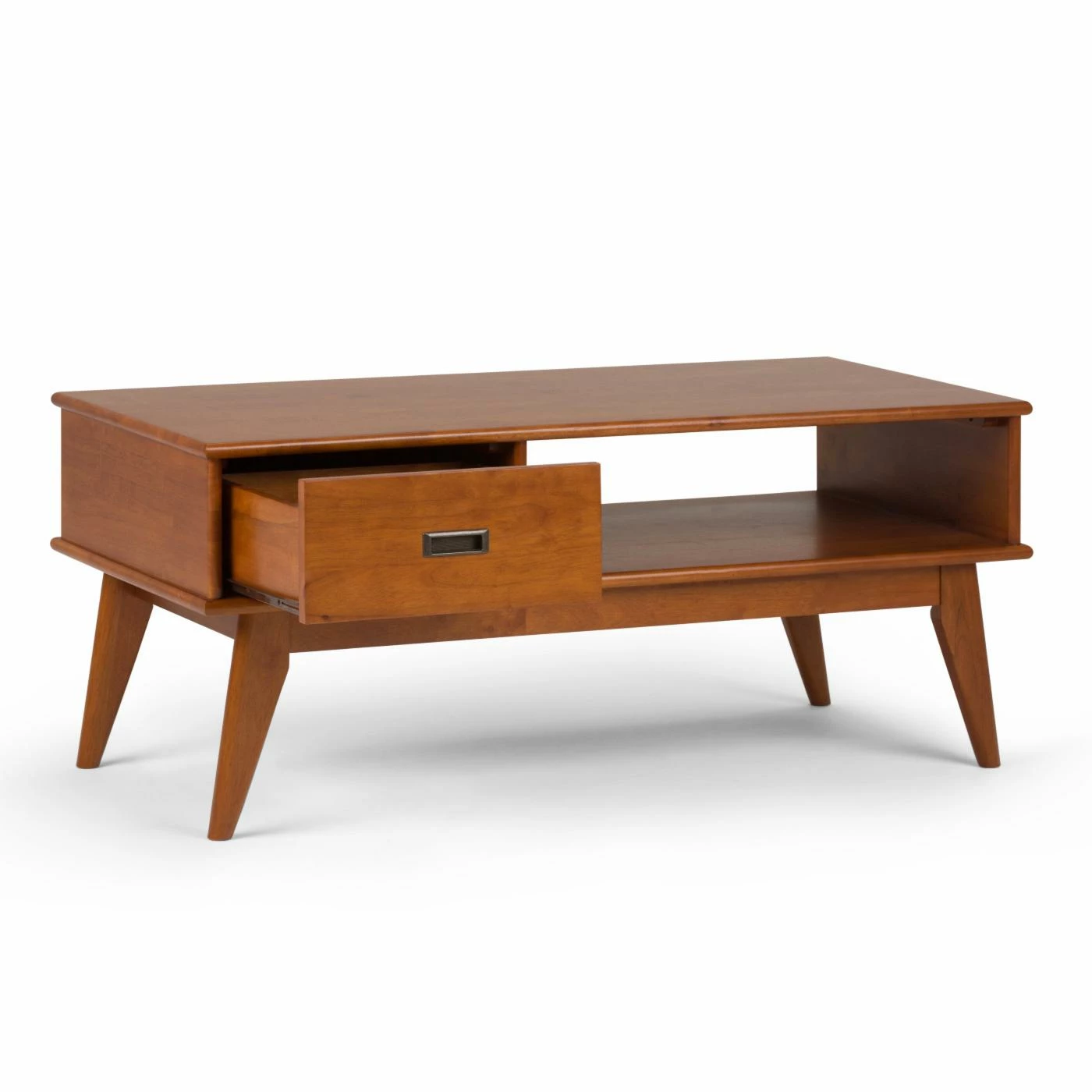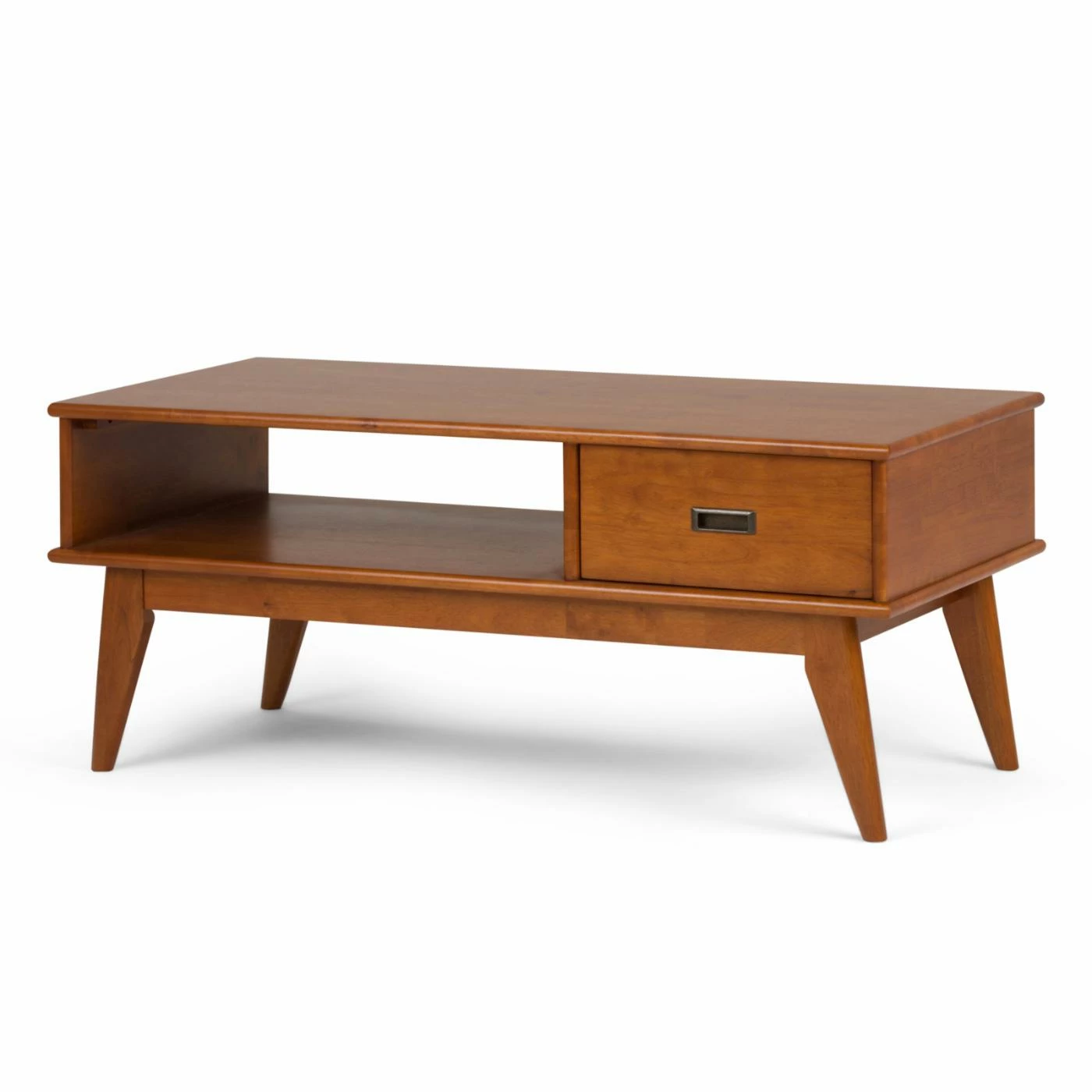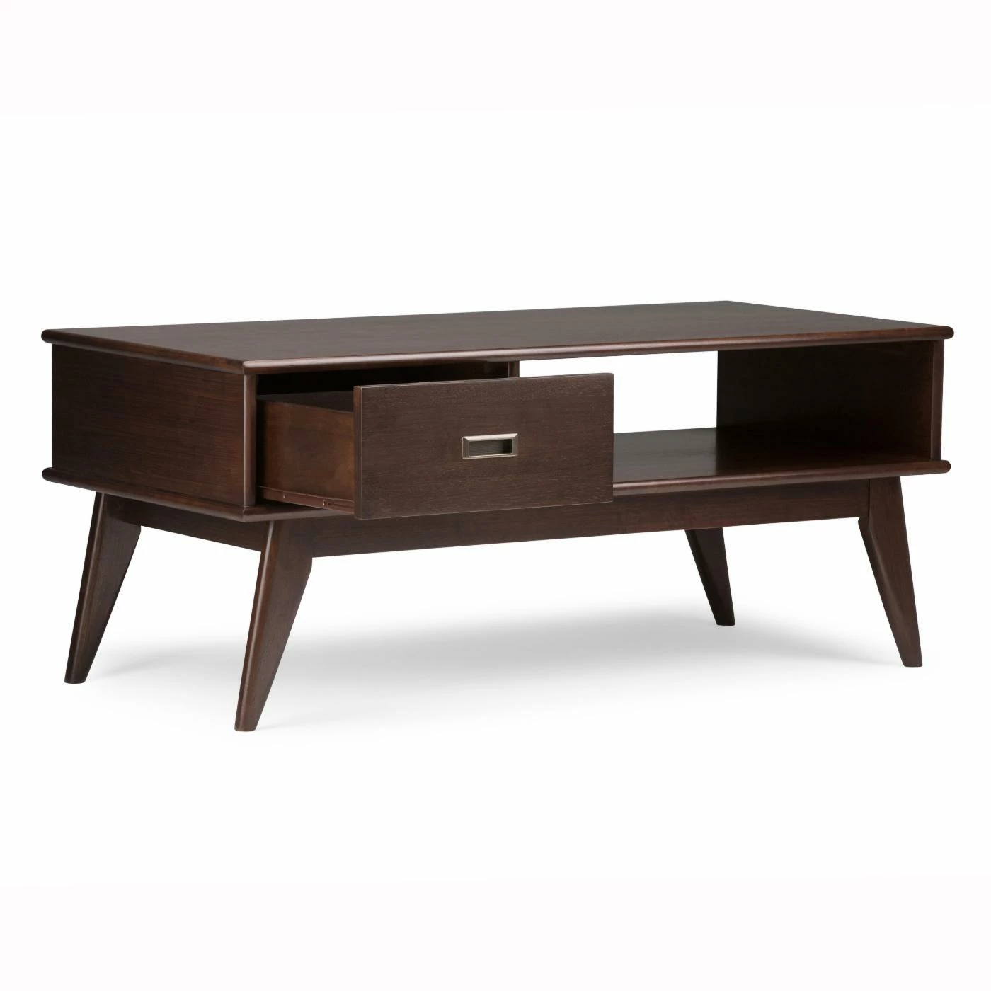 Add a mid-century touch to your living space with the Brooklyn + Max Baxter Solid Hardwood Coffee Table. This coffee table has ample storage with a large open space and a drawer. The angled tapered legs add a unique touch everyone will love.