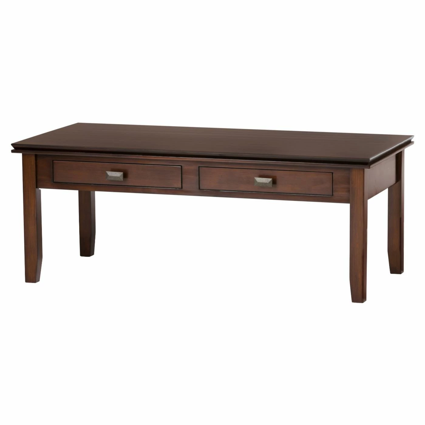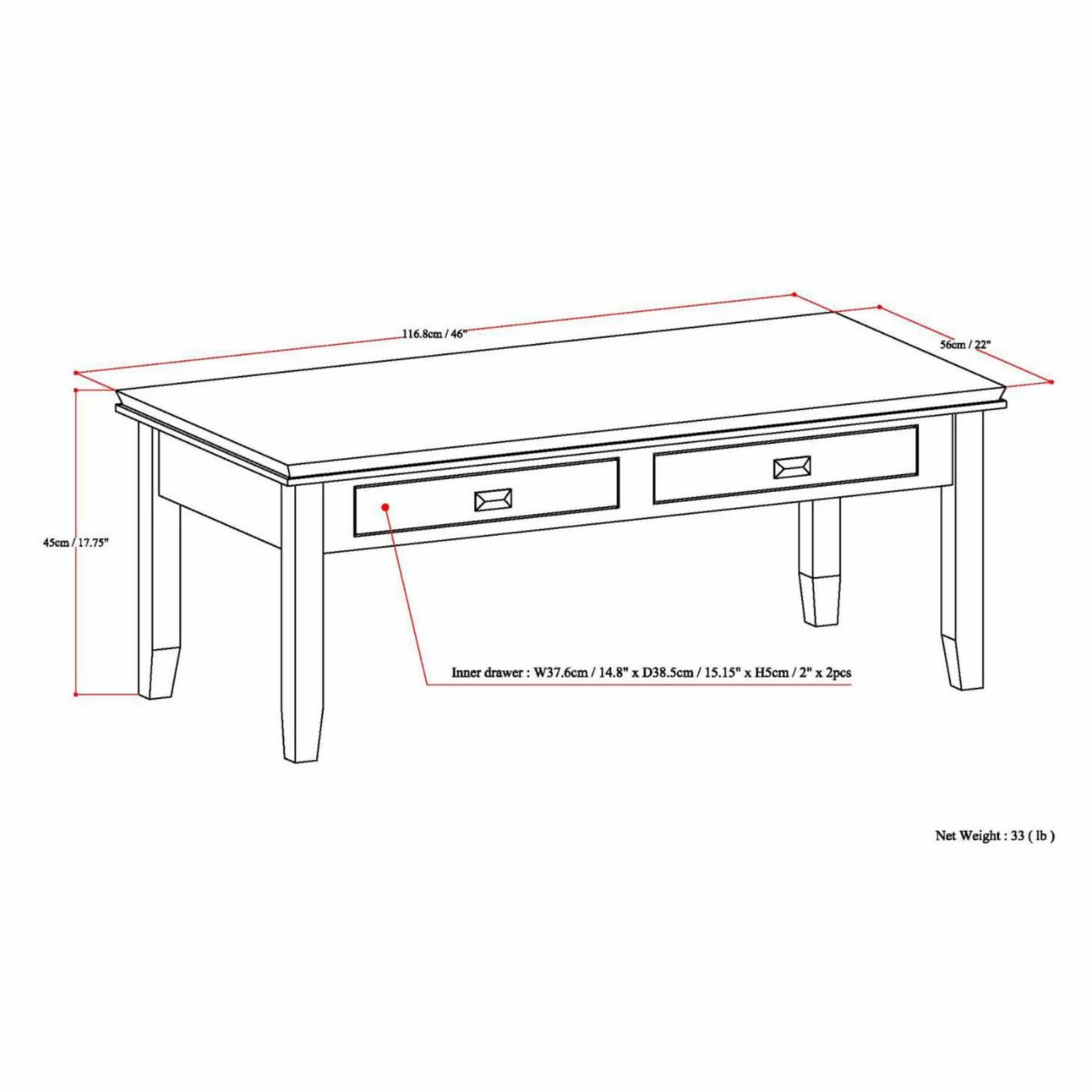 The classic look of the Brooklyn & Max Holden Wood 46 in. Wide Rectangle Contemporary Coffee Table makes it perfect for any living room. Made with a combination of solid and engineered wood, it features two functional and two decorative drawers.