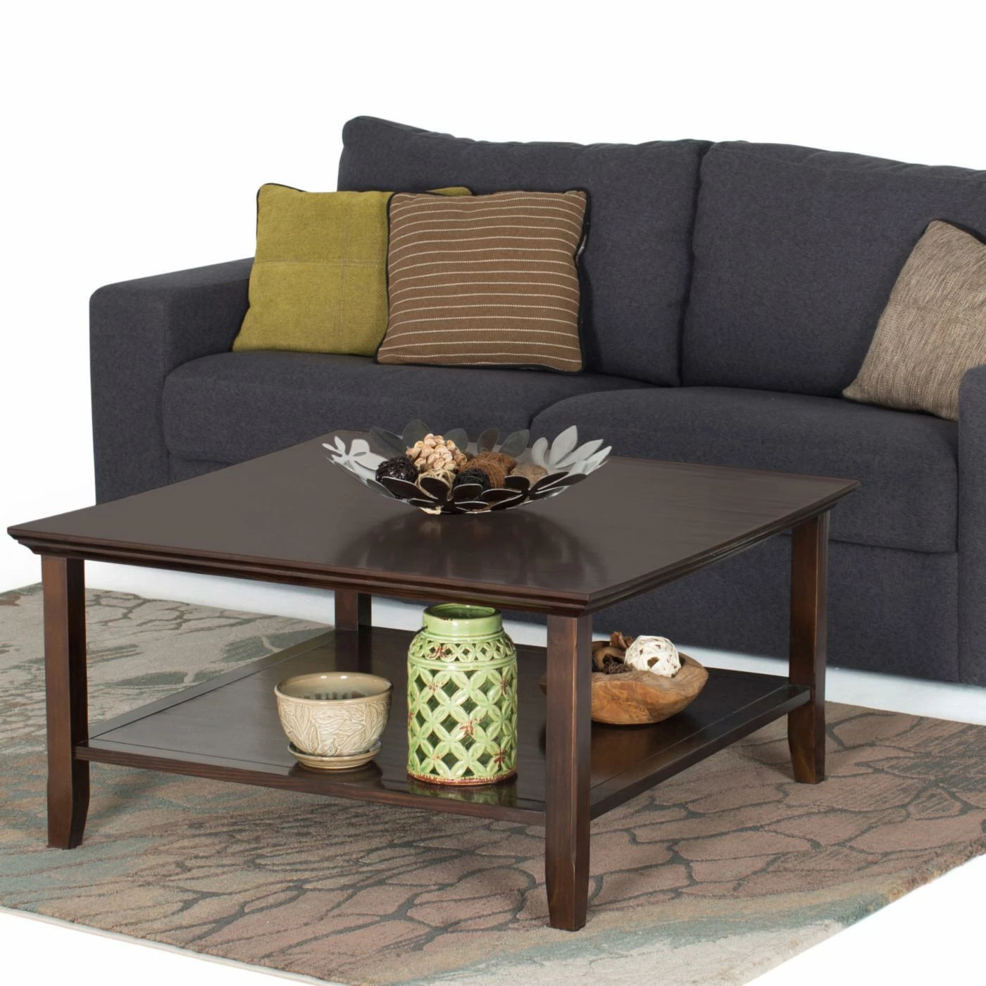 Add a simple and traditional touch to your living room with the Brooklyn + Max Brunswick Solid Wood Square Coffee Table. This coffee table has a molded crown top. The lower shelf is ideal for storing blankets, magazines, books, or remotes for easy access.