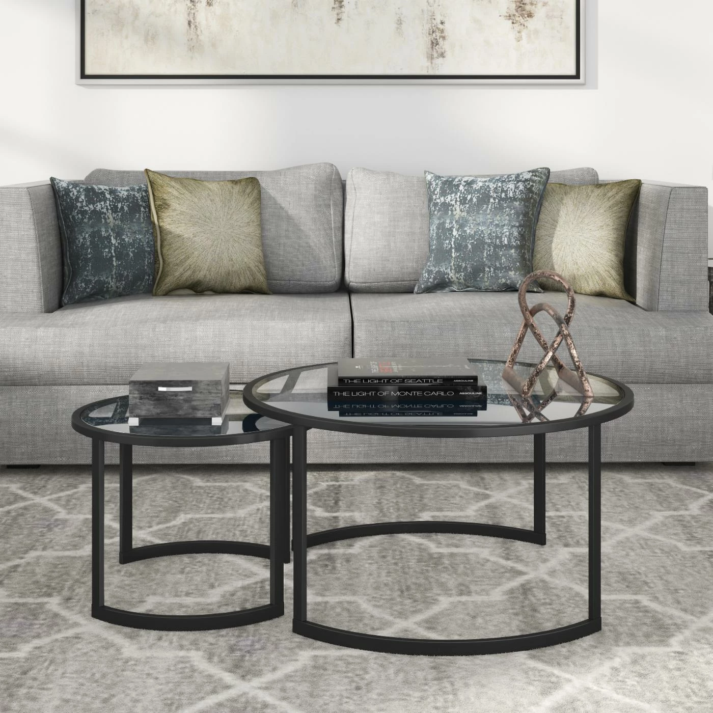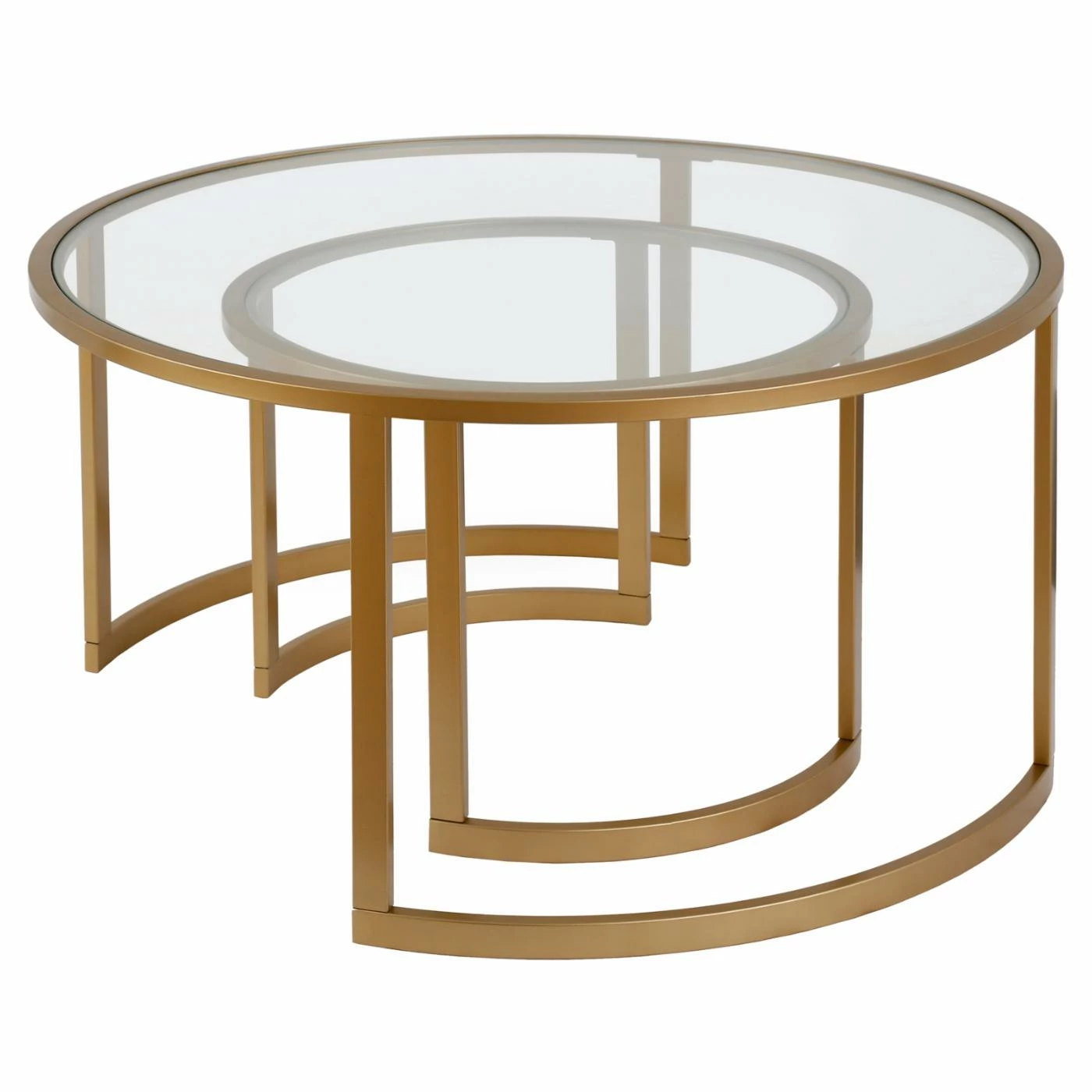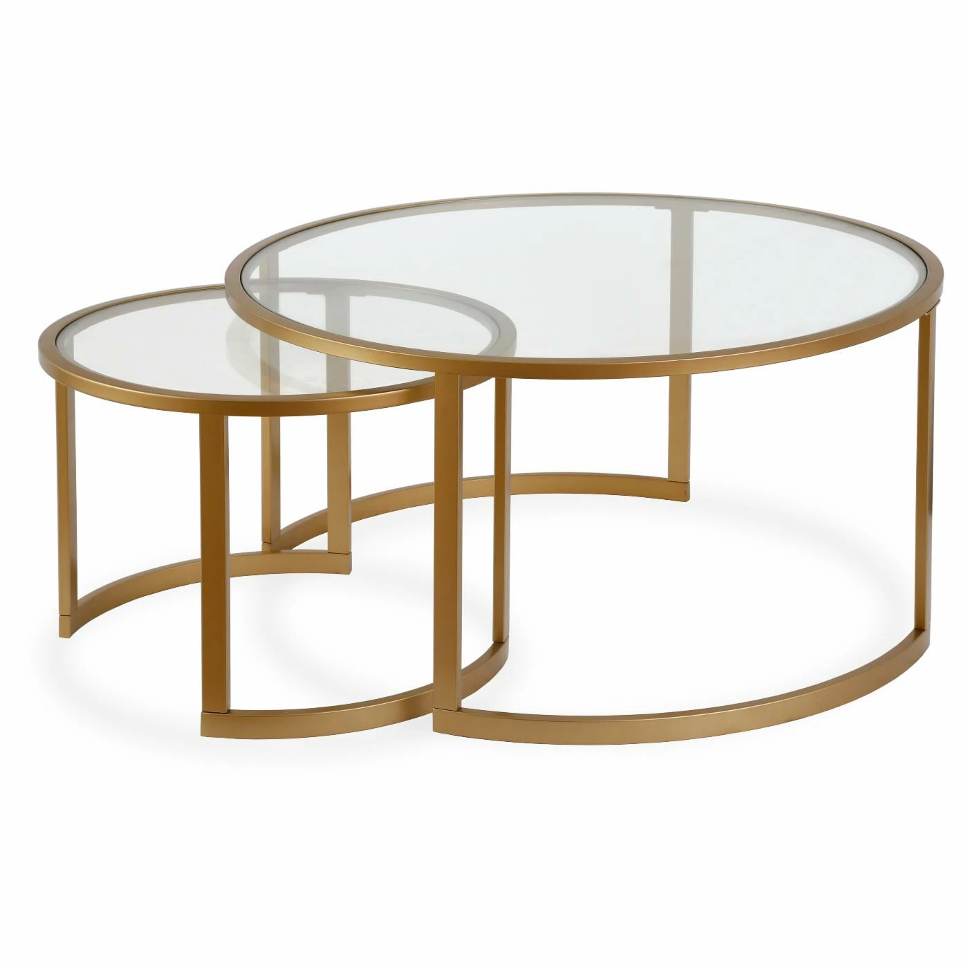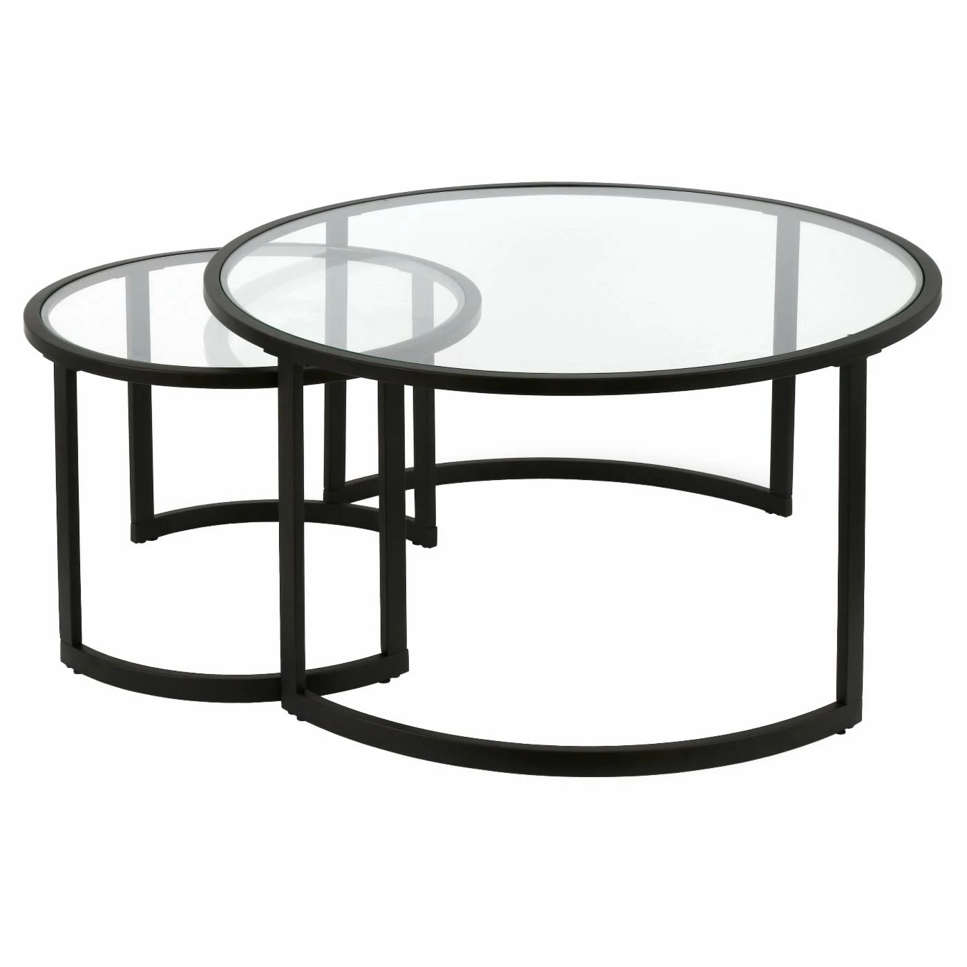 The Hudson & Canal Mitera Coffee Table makes a stunningly simple place to start planning your living room design. Its frame is rendered from durable, squared steel. Curved legs with open sides support the design. The round tabletop is crafted from a solid piece of clear tempered glass. Select among the available finish options.