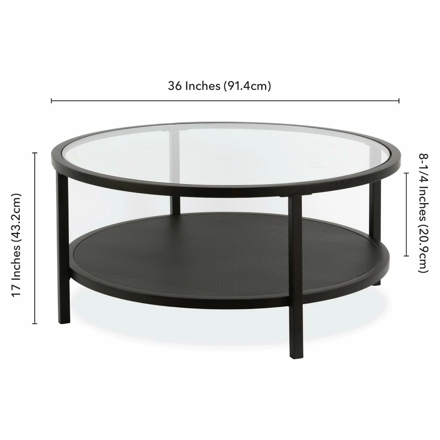 - Dimensions: 36 diam. x 17H in.