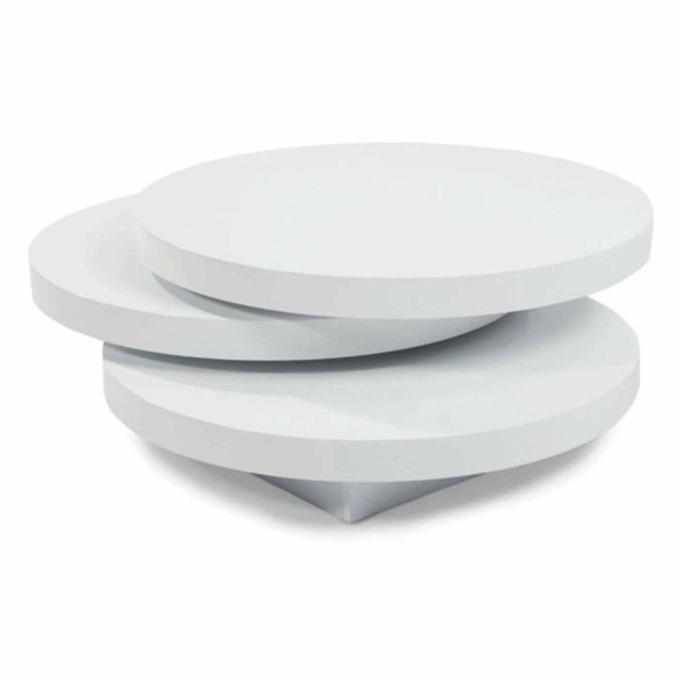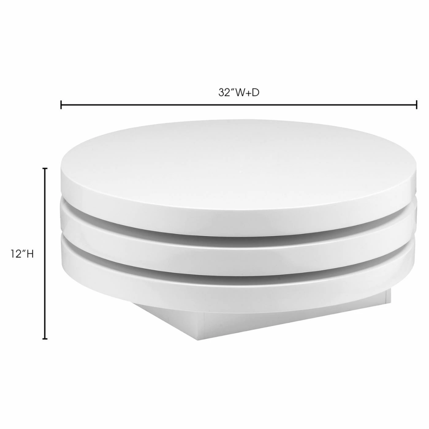 The Moe’s Home Collection Torno Coffee Table gives a unique contemporary twist to your living room. Made with a fun and stylish, 3-level swiveling top that gives extra room for guests or three levels of display space. Its cool, swivel style is all the reason you need to add this artistic coffee table to your home. It is made made of premium engineered wood and is available in fresh white or dark brown.