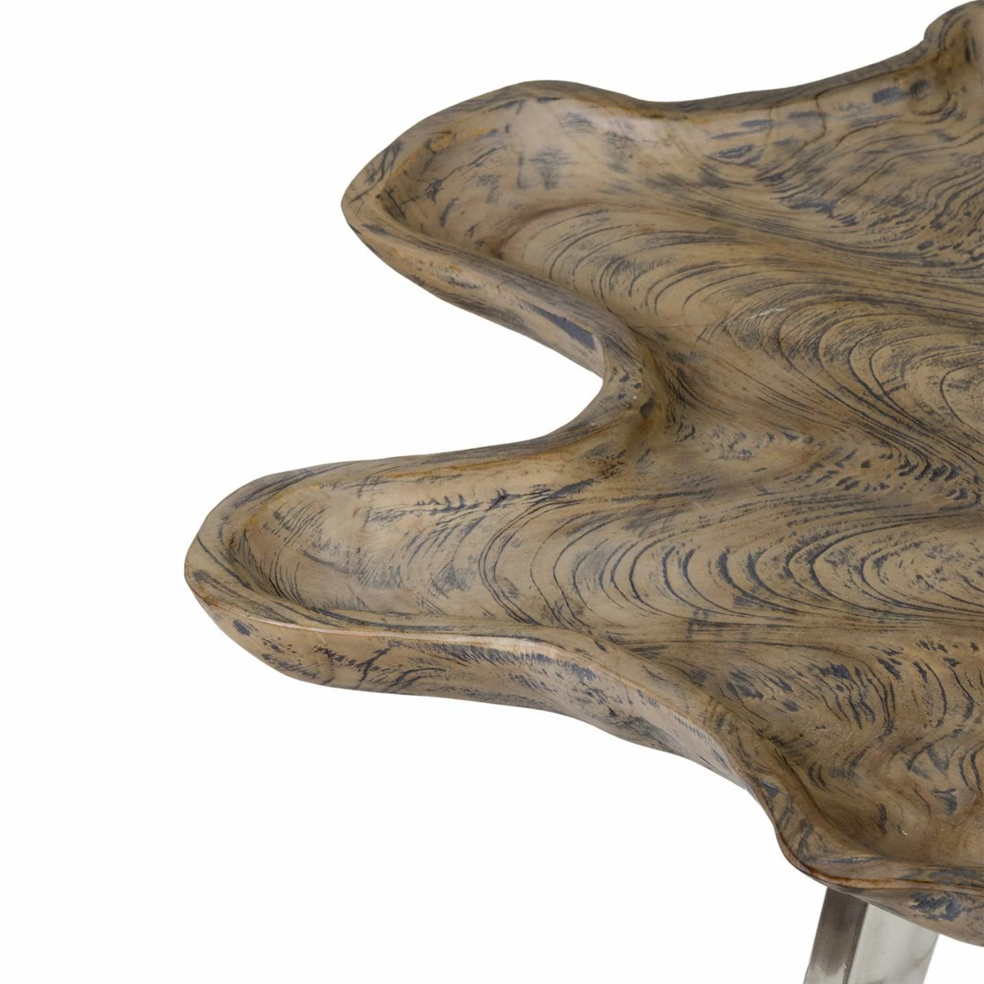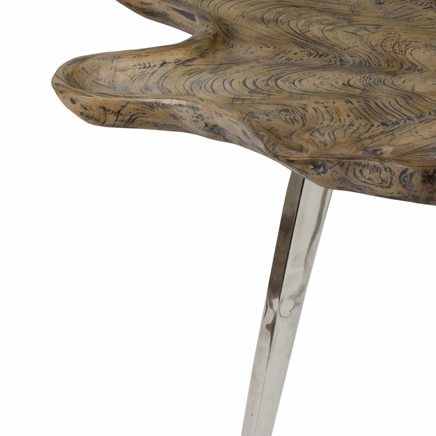 Crafted from teak, the East At Main Adriana Coffee Table features a unique freeform design for a natural look. The tabletop is finished in a soft gray, with a flat surface upon which to rest a drink or centerpiece. The legs are crafted from metal in a silver color to add a modern touch.