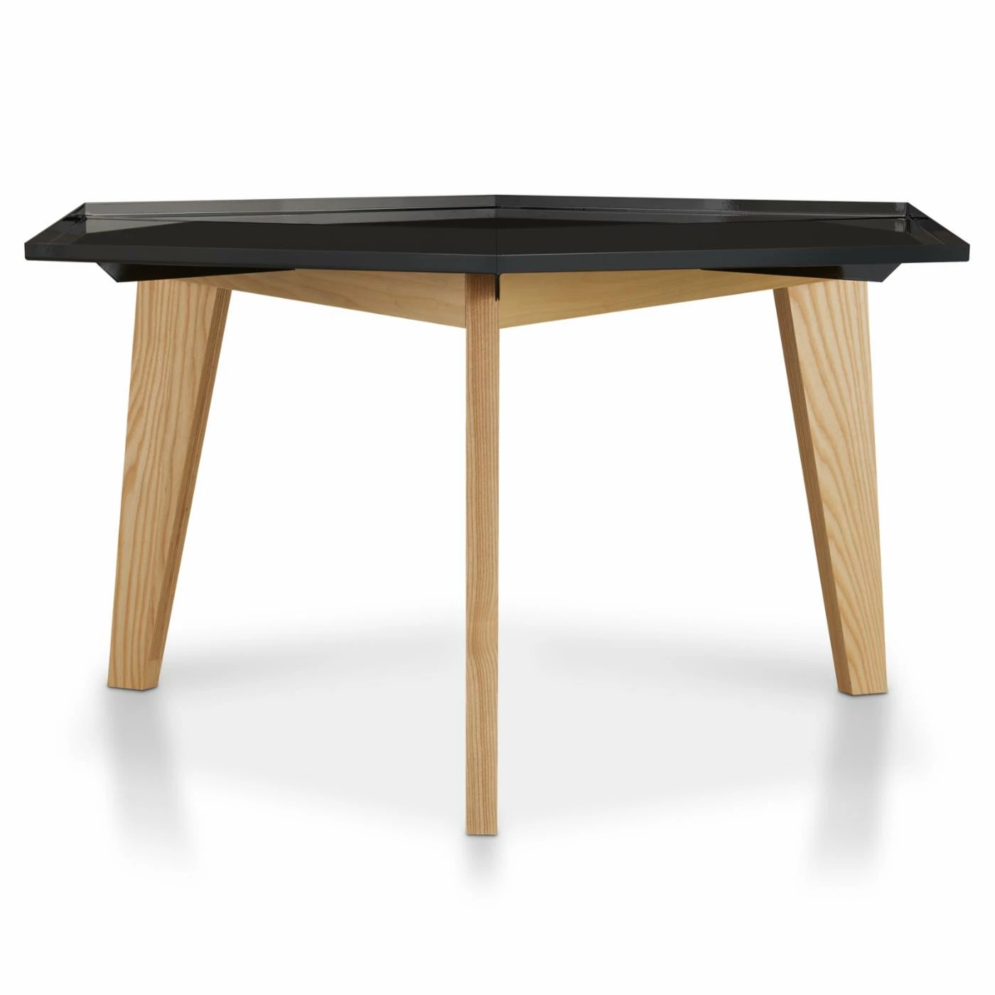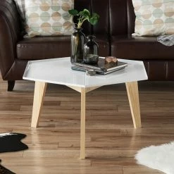 Boost the modern appeal of your seating area with the Furniture of America Modern Vidor Hexagon Coffee Table. The hexagonal metal top features raised edges to keep decorative accents, or drinks and snacks, safely in place. Angled wood legs provide sturdy support and add mid-century flair to the furnishing.