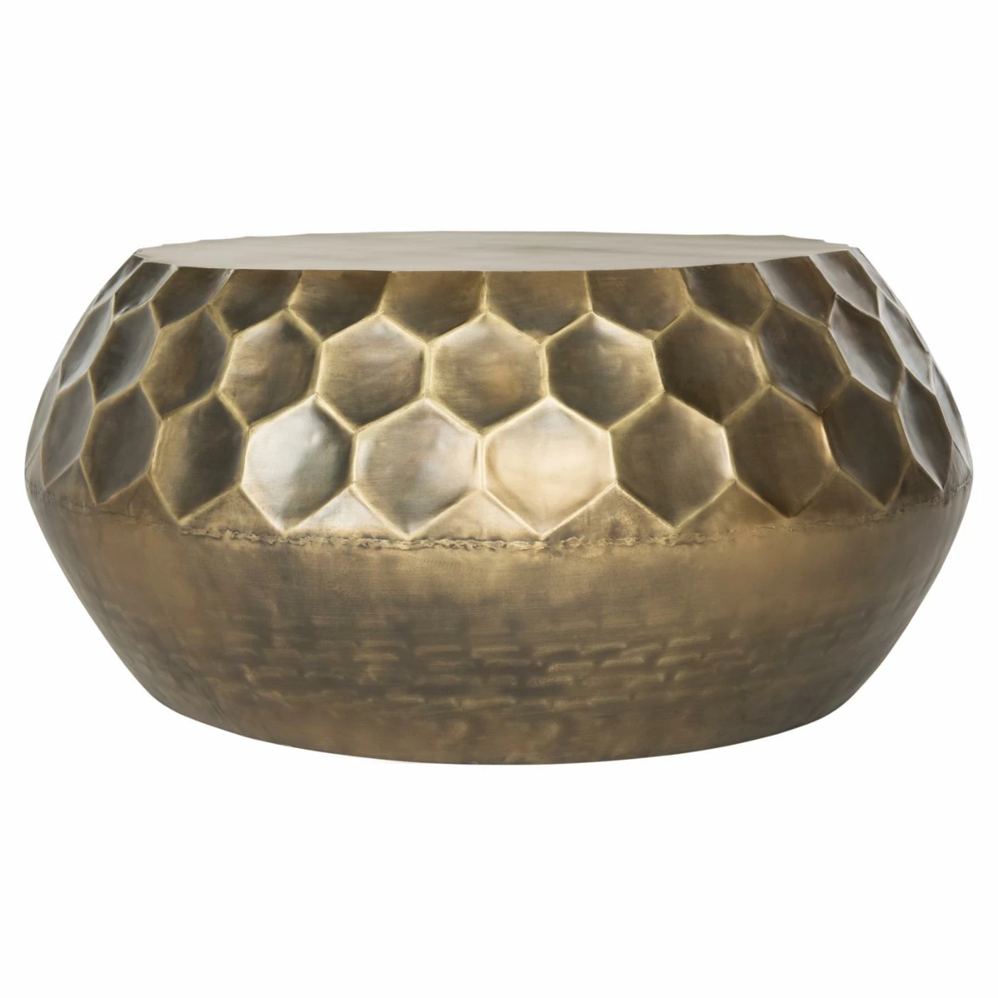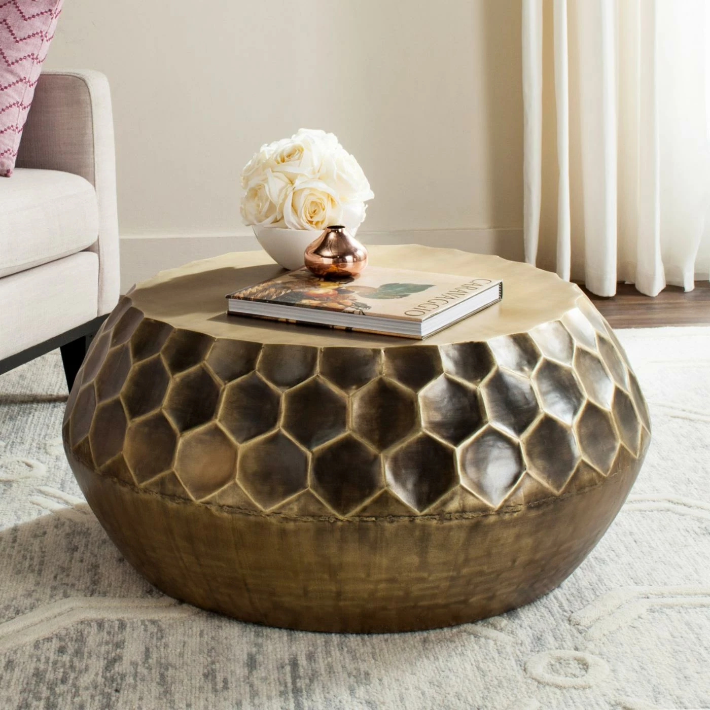 Marrying faceted and smooth textures, the Safavieh Roxanna Coffee Table is a contemporary study in contrasts. The table is fabricated out of robust iron, giving it the strength required to hold up to years of daily use. For a touch of elegance, the metal is finished in rich antiqued brass.
