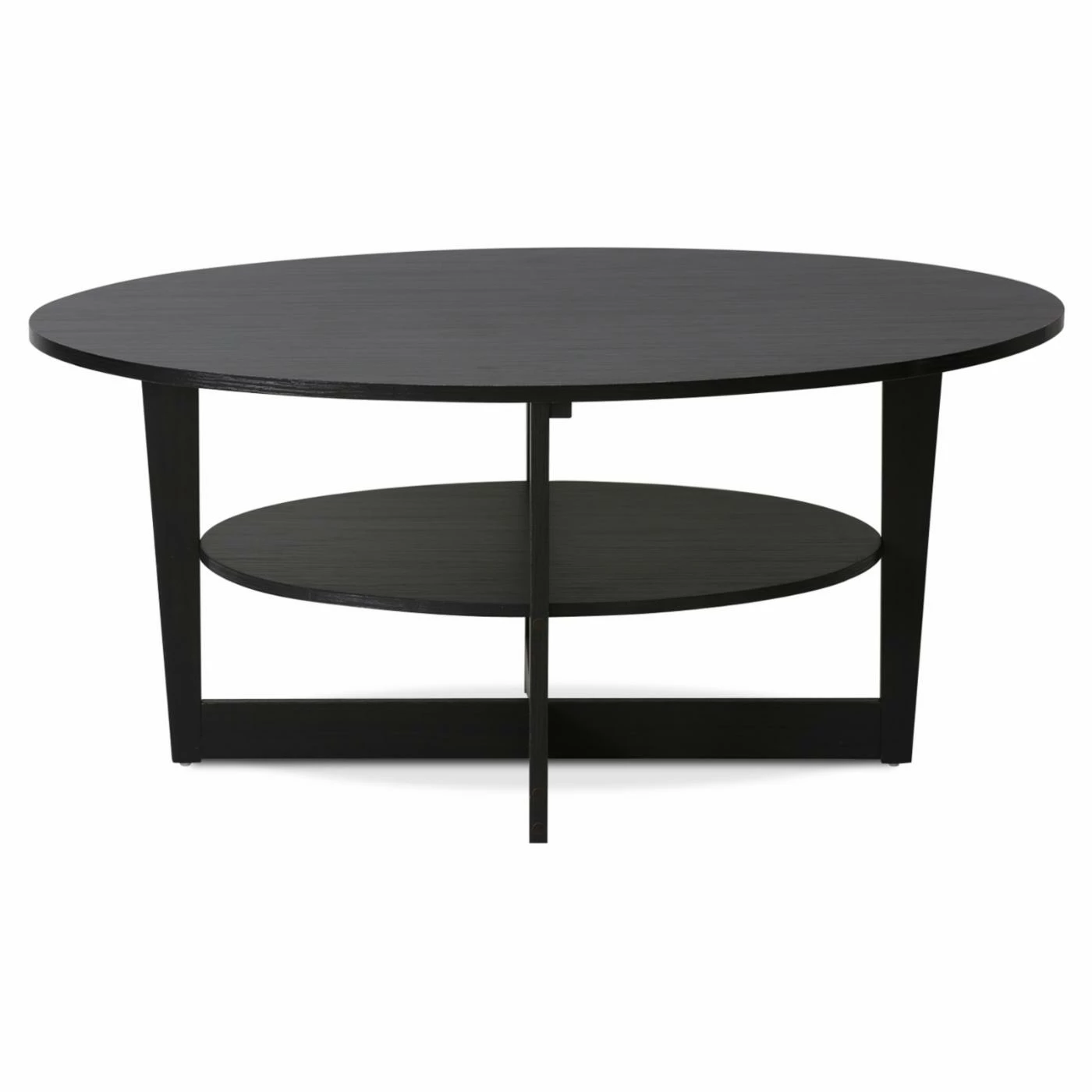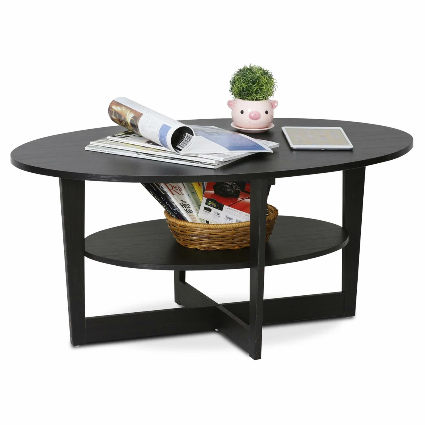 Give your dΓ©cor a modern boost with the Furinno Jaya Round Coffee Table, featuring a rich walnut finish that creates a warm, inviting atmosphere. This unique coffee table is crafted of sturdy engineered, MDF wood that resists water damage and warping, maintaining a sleek, polished look over time. A large lower shelf provides excellent storage for media or favorite books, keeping essentials within arms-reach. This coffee table stands out with angled legs and a cross-style base, adding a touch of contemporary style to any room in your home.