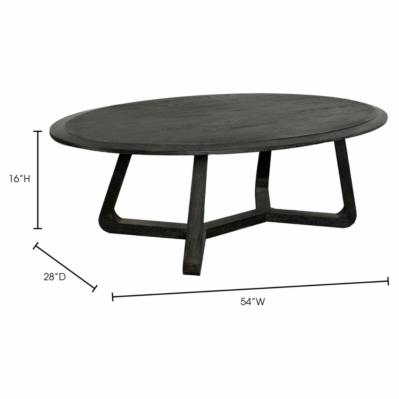 With its oversize oval tabletop, the Moes Home Collection Nathan Coffee Table is the perfect centerpiece for a large minimalist modern seating area. The top is supported by heavy diagonal legs joined by weighty stretches. Every inch of the solid oak and plywood table is covered with oak veneers for an attractive wood grain effect.