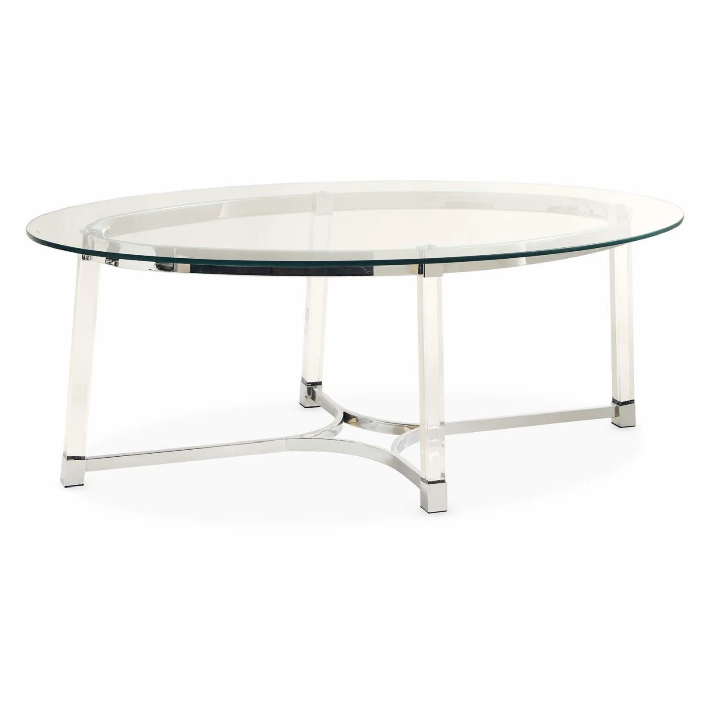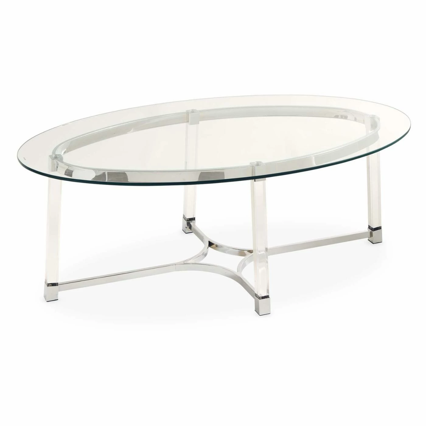 Your guests will need a second to get accustomed to the unique style of the Picket House Furnishings Sophia Coffee Table. This table bucks convention by being crafted from a combination of tempered glass, chromed steel, and clear acrylic. The oval-shaped top is made from the shatter-resistant glass with a thick, polished edge. Block-style legs of clear acrylic give height to the design while metal brackets join them together. The metal provides a touch of glam courtesy of the polished chrome finish. This table has an elegant, airy style, but it’s also durable enough for use in any part of your home.