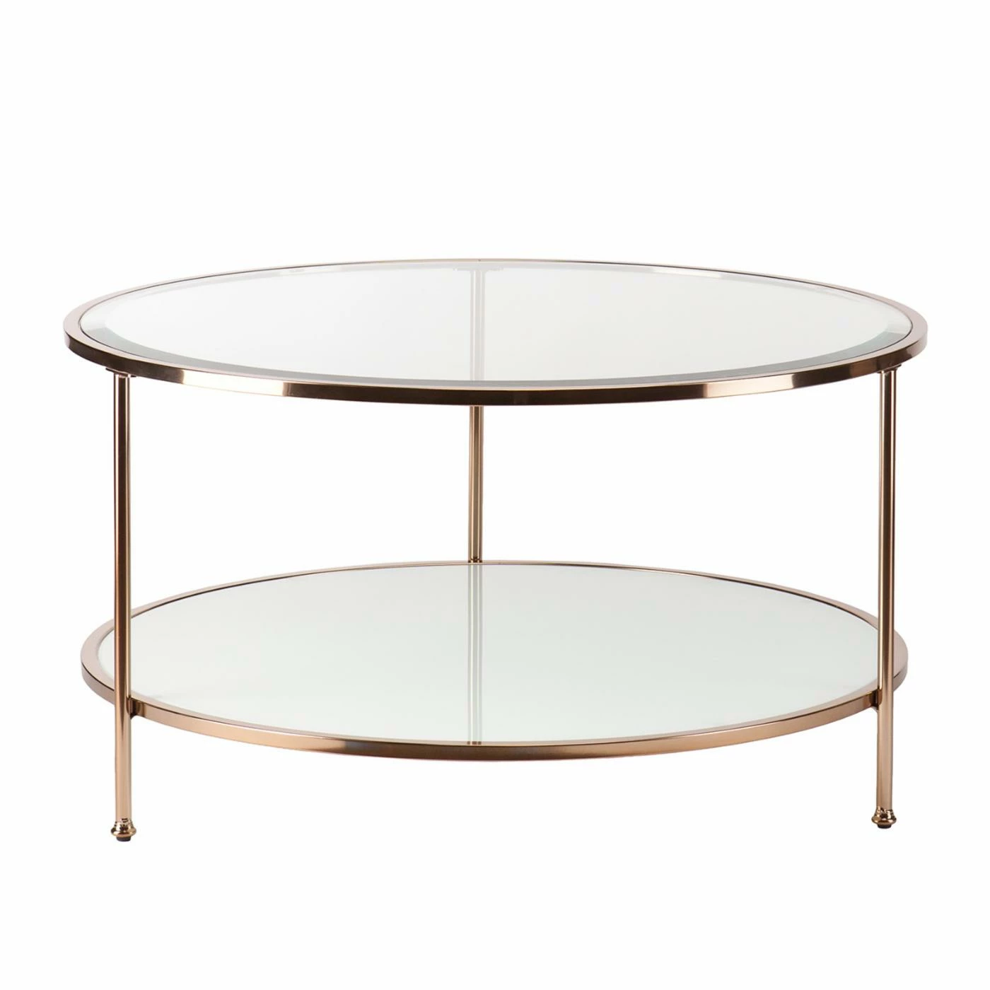 Part-vintage and part-industrial, the Southern Enterprises Risa Cocktail Table adds retro glam to your living room, den, or home office. The design, inspired by 1920s styles, features a tripod base with an oval wide-beveled clear glass top and a glass shelf below. The cocktail table is crafted of metal and glass and available in a choice of finish.