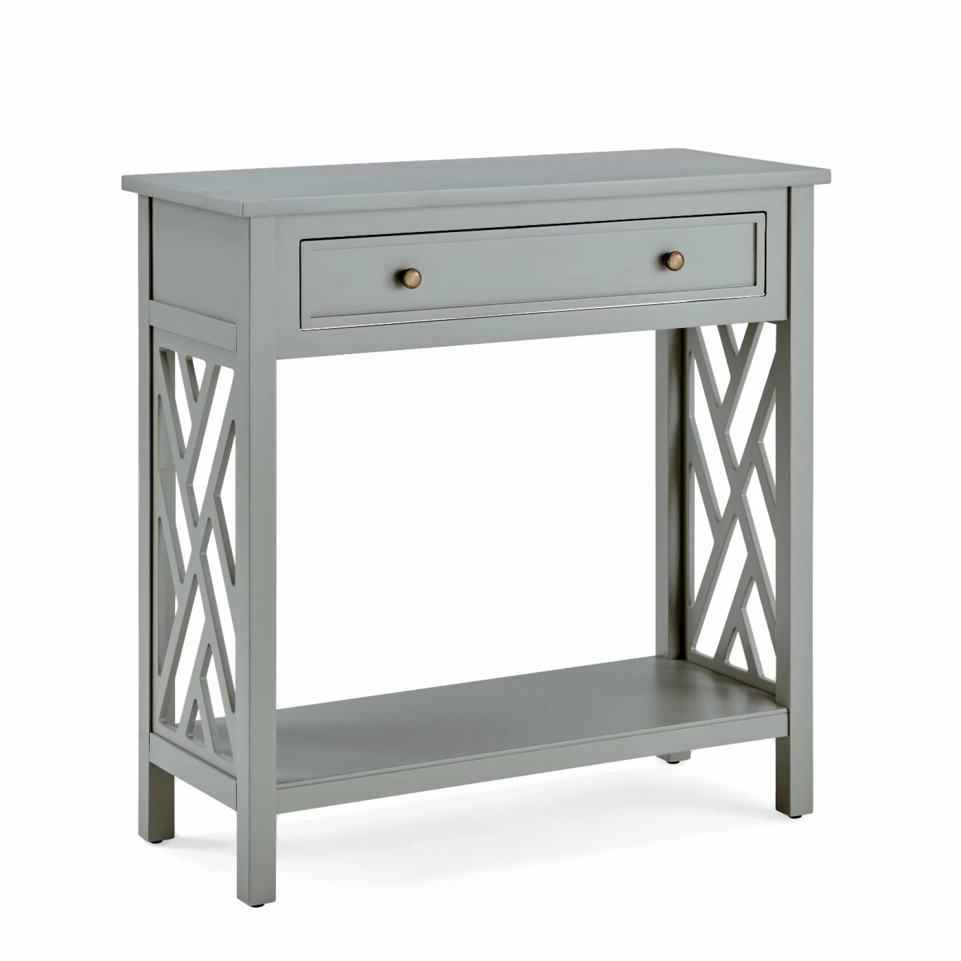 Coventry is a fresh, clean collection that is versatile in any space. The square pattern, open-detailing on each side is airy and offers a unique look for your dรฉcor. Each piece offers additional storage or display space with a shelf, drawer, or pull out tray shelf. In both dove gray and white, these pieces are the perfect compliment to your space.