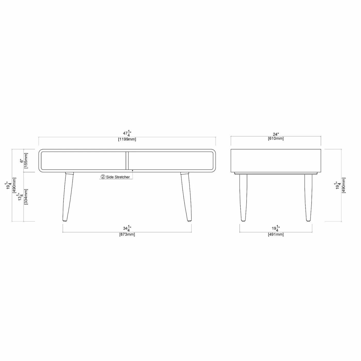 - Coffee table dimensions: 47L x 24W x 19H inches