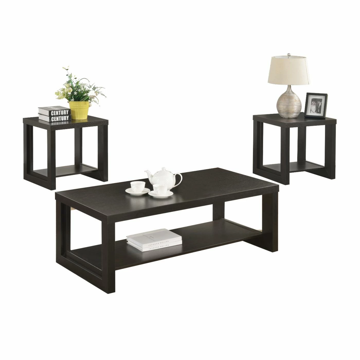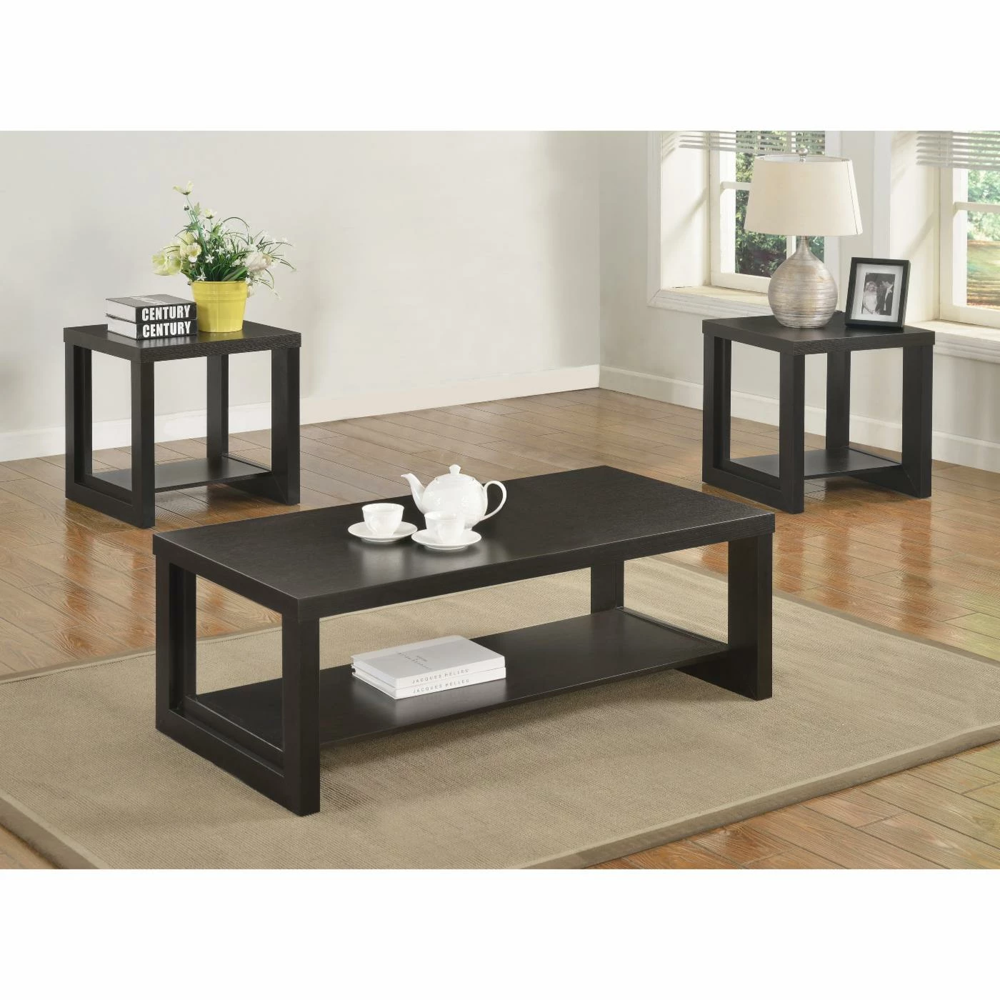 You will be able to complete your living room in full style with the Crown Mark Audra 3 Piece Cocktail Table Set. This elegant set includes a cocktail table and two end tables in an espresso finish. The bottom of the melamine wood cocktail table features a shelf where you can place books, magazines, or blankets. The top of this table is perfect height to keep coasters for drinks, your remotes, or decorating items. Each end table also has a shelf on the bottom; your creative brain will really be put to work.