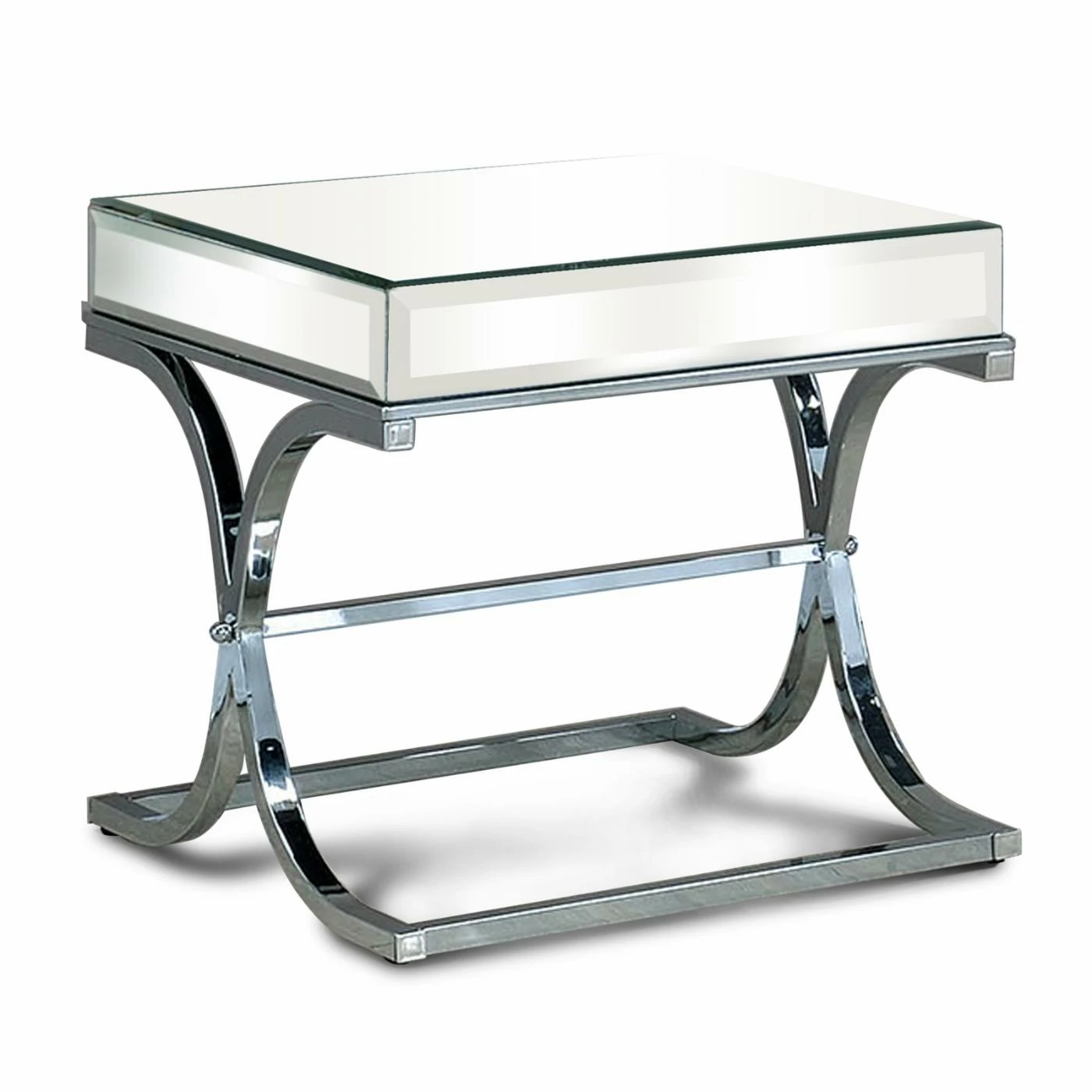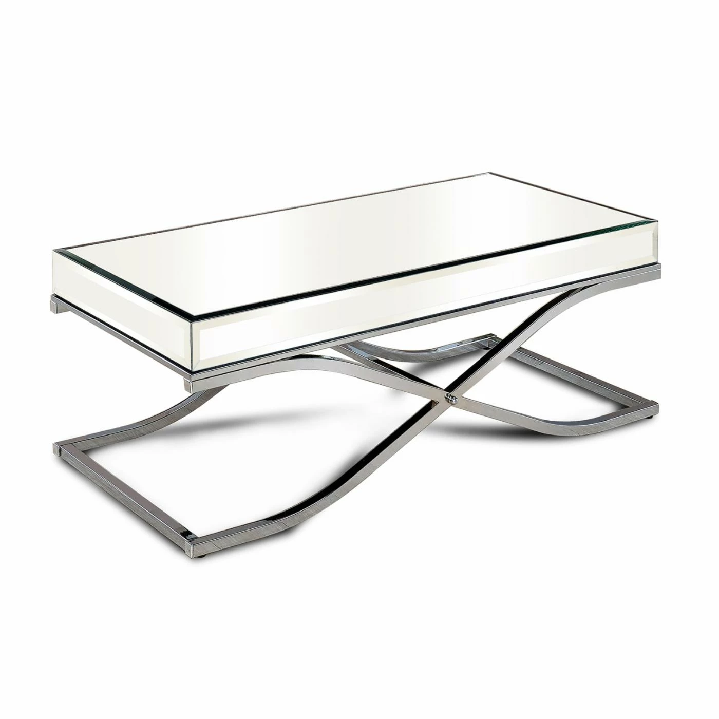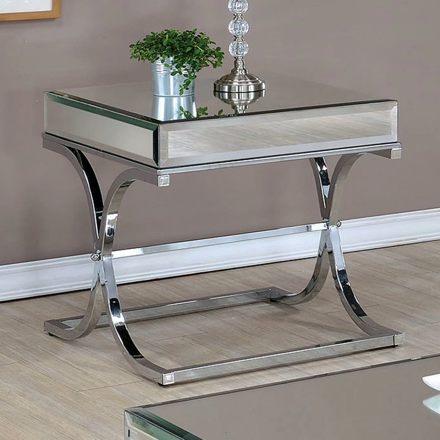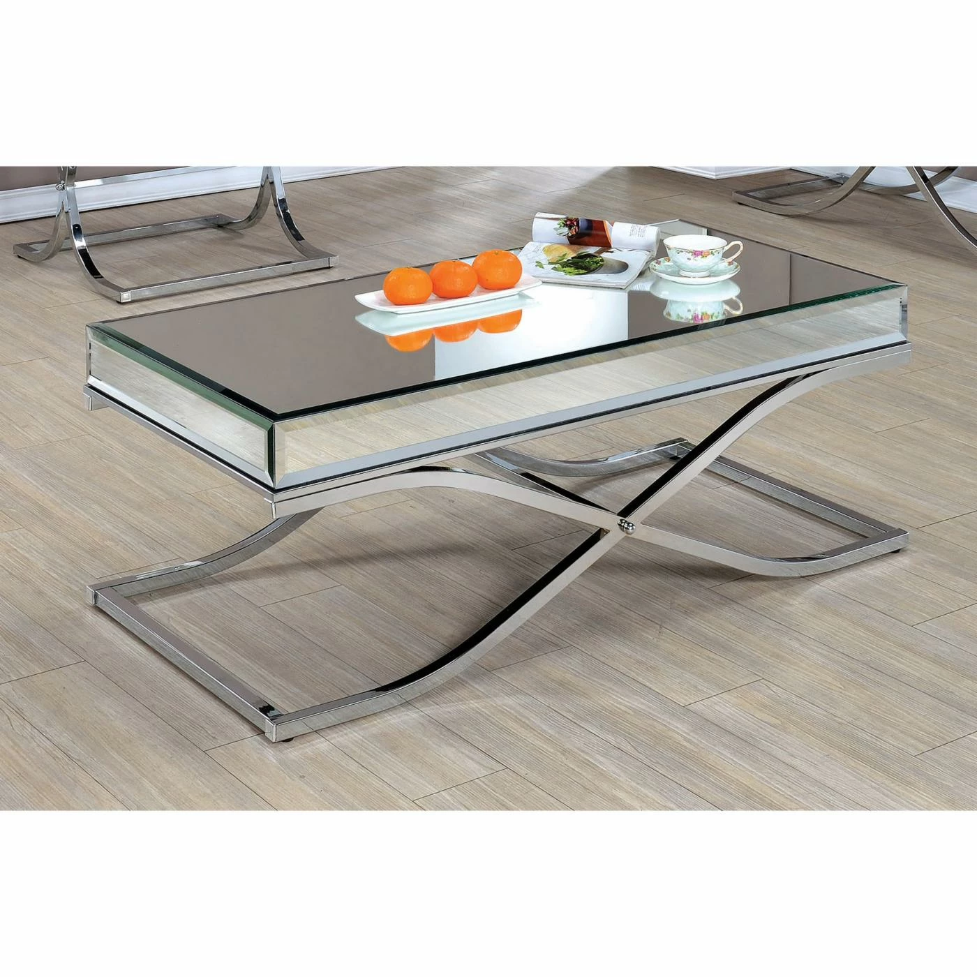 Contemporary elements and quality construction come through in this Furniture of America Sarita Mirror Top 3 Piece Coffee Table Set. Each furniture piece showcases a metal frame and connected legs for impressive stability. Finished in sleek chrome, they also have a glass tabletop perfect for displaying and storing household items.