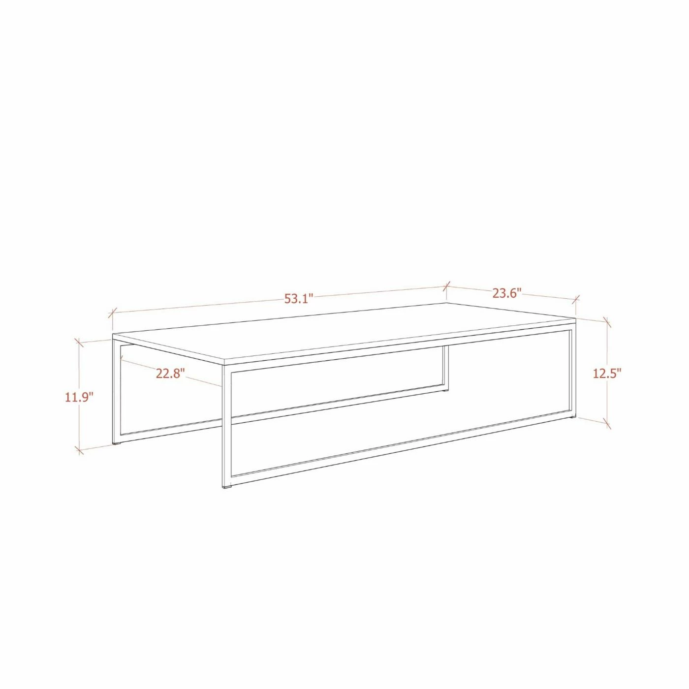 - Coffee table: 53.14 W x 23.62 D x 12.44 H in.