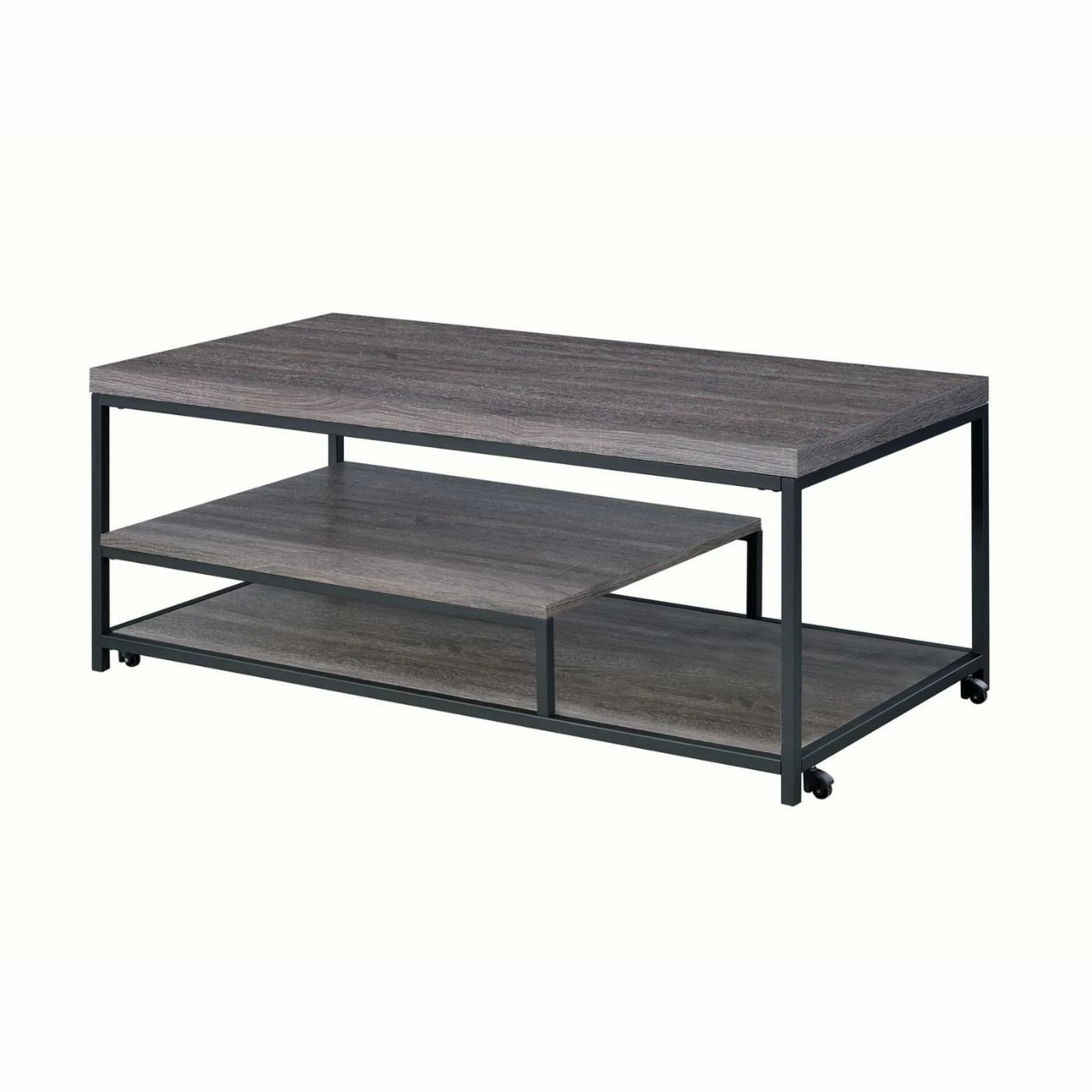 The Picket House Furnishings Aspen 3 Piece Coffee Table Set has a simple shape with just a touch of asymmetry to create a modern feel. This set includes a coffee table with two matching side tables. Each table has a frame of square-tube steel with a matte black finish. Each of the horizontal surfaces is crafted with engineered wood that won’t warp or crack over time. The shelves are covered in wood grain laminate that evokes the look of weathered driftwood. These tables offer a contemporary style that’s perfect for any modern space.