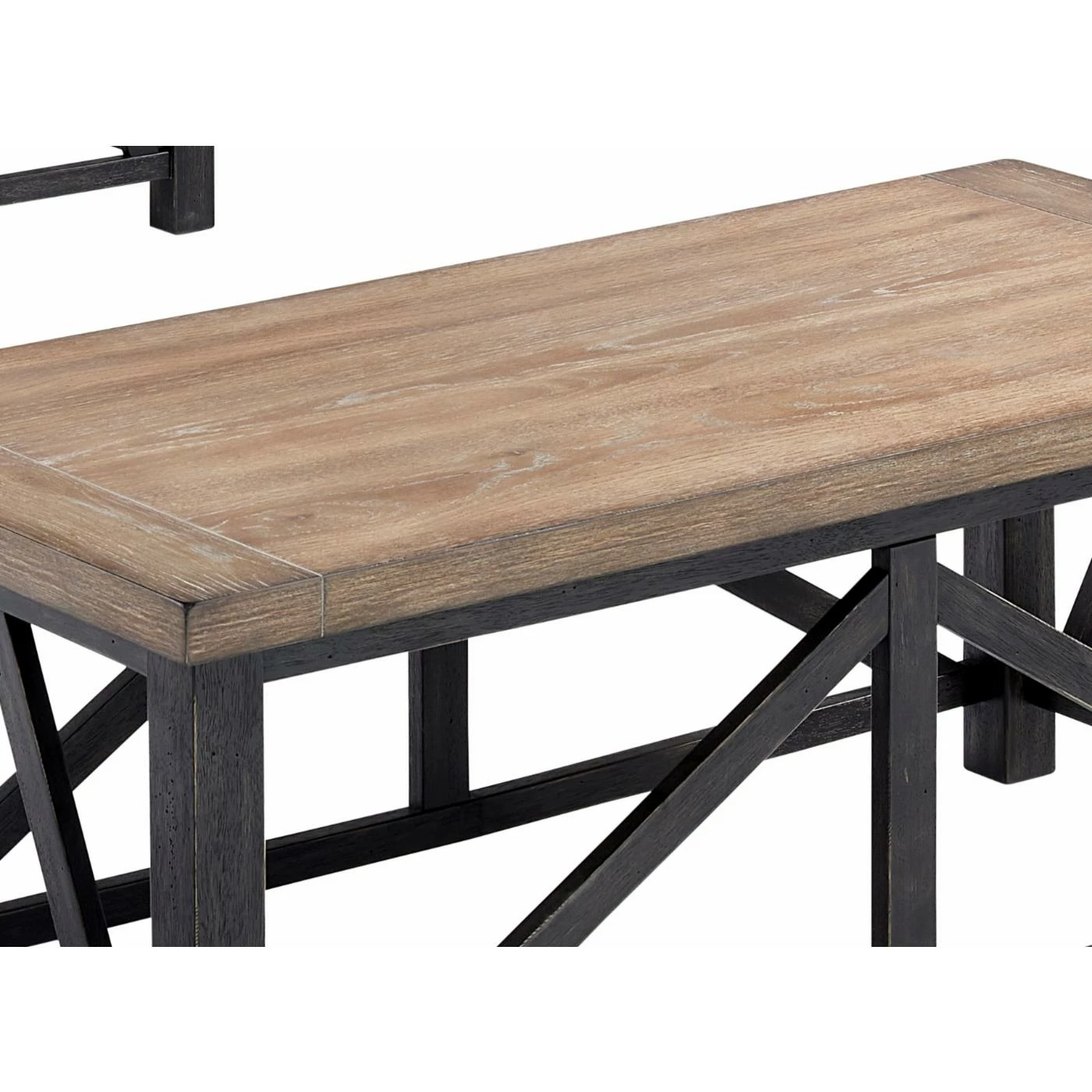 - Contrast oak and black finish