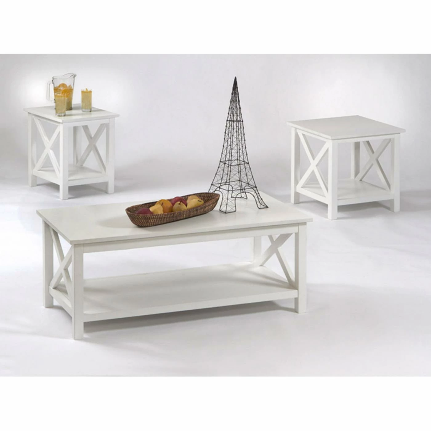 Get every table you need for a complete living room all in one purchase with the Progressive Furniture Seascape 3 Piece Coffee Table Set. This transitional style trio includes an end table, chairside table, and a coffee table that boasts a convenient full lift-top function. Each piece flaunts crisscross sides and is crafted from a durable blend of MDF, rubberwood, and poplar in your choice of textured veneer.