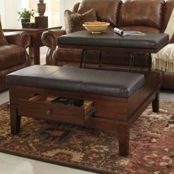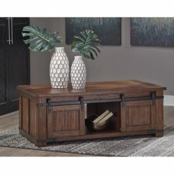 Warm and inviting, the Signature Design By Ashley Murphy Brown Occasional Table – Set of 3 adds rustic beauty to your living room. This durable set of three is made with select veneers and hardwood solids. A burnished medium brown finish covers each piece while featuring a chiseled effect. On each corner, metal bracket accents in bronze are shown with nail details. The reclaimed/distressed design of this set graces one cocktail table and two end tables.