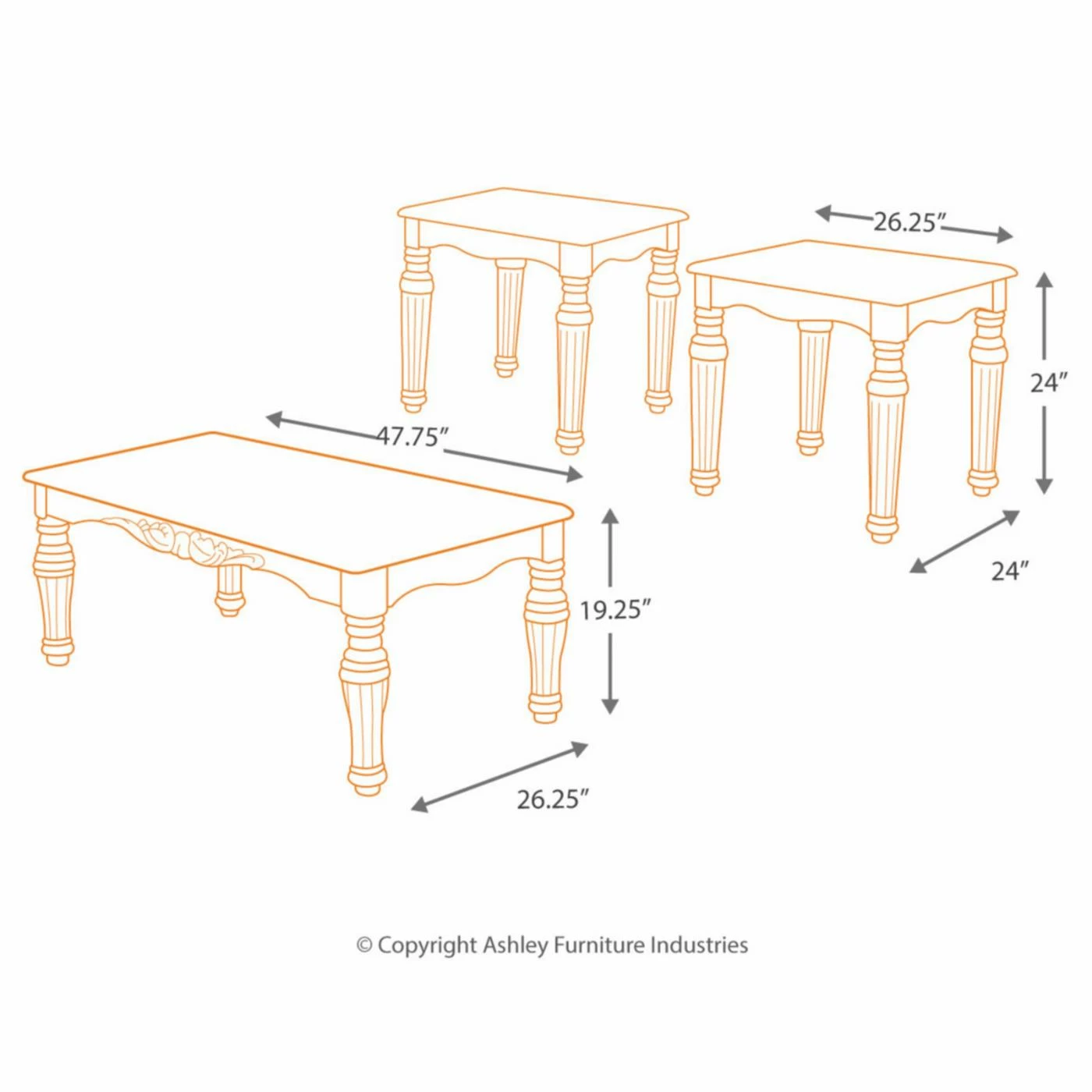 Handsomely appointed and designed to unify your living space, the Signature Design By Ashley North Shore Brown Occasional Table – Set of 3 includes a matching cocktail table and two end tables. Each are graced with a faux marble top with a glossy polyurethane finish. Sturdy wood frames are graced with a dark brown finish. Ornately turned legs and shaped aprons with overlay detailing lend traditional appeal.