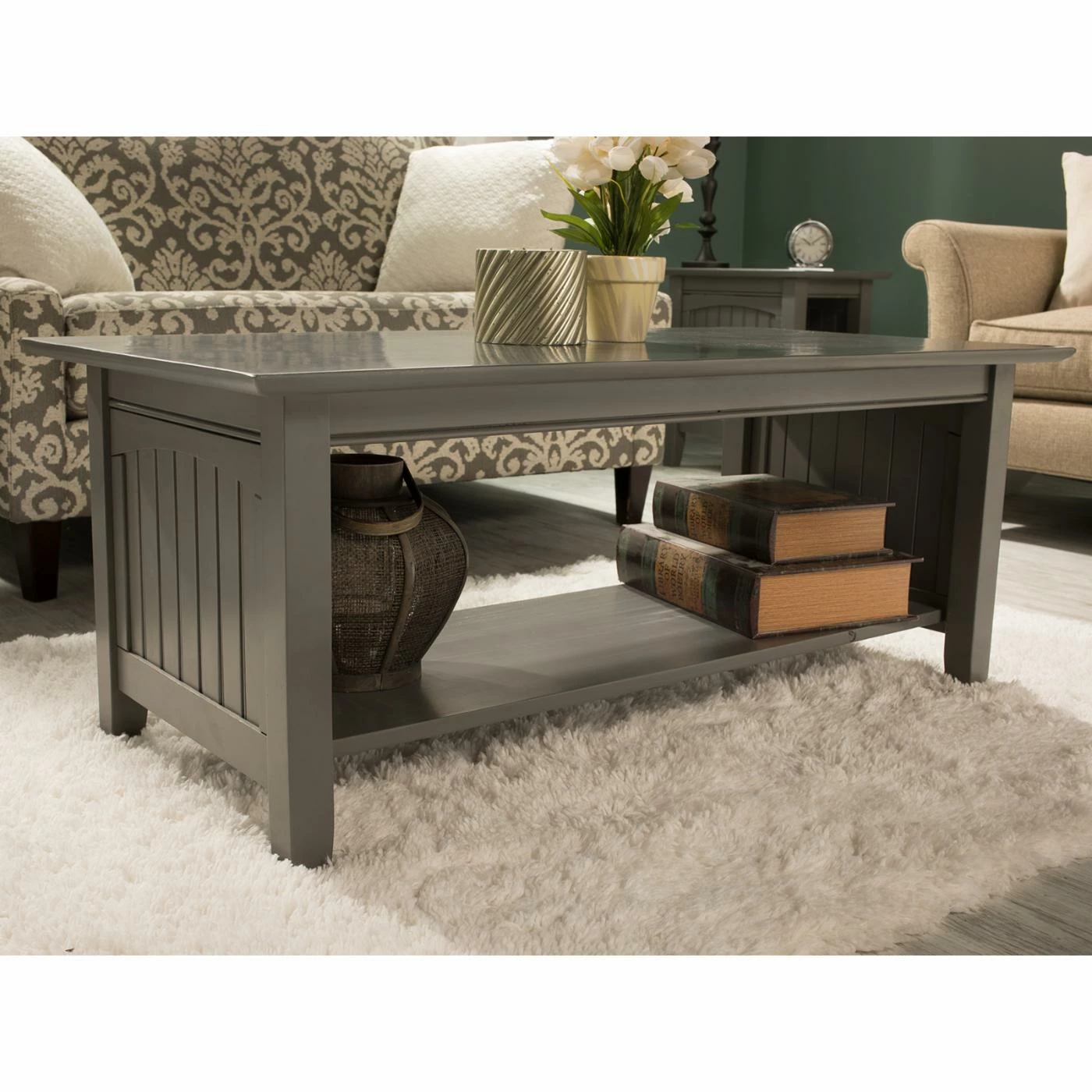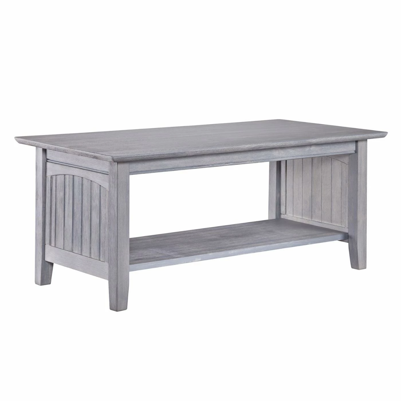 A coffee table says a lot about a living room, it sets the tone. And the tone of the AFI Furnishings Nantucket Coffee Table is pure coziness. This chic meets cottage design is crafted from solid, eco-friendly hardwood in your choice of available finish options. It features tongue and groove, beadboard details, and a generous tabletop perfect for serving food and drink at your next family room gab-session. For even greater utility, the table’s base has been left open to provide you with a full-width storage/display shelf perfect for stowing reading material, serverware, linens, and more. Some light assembly is required.