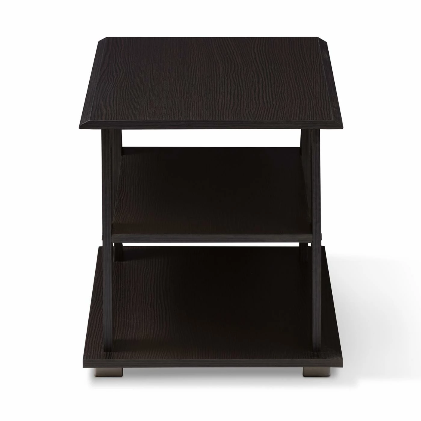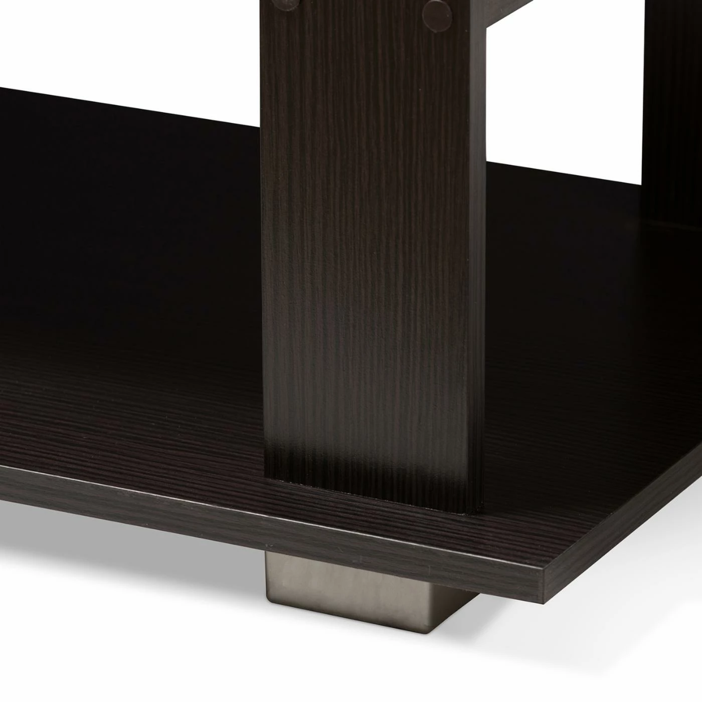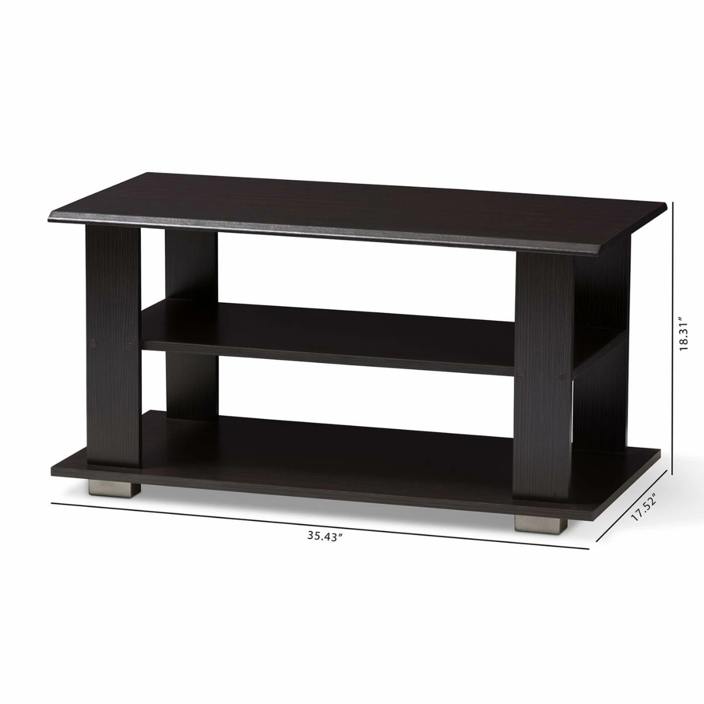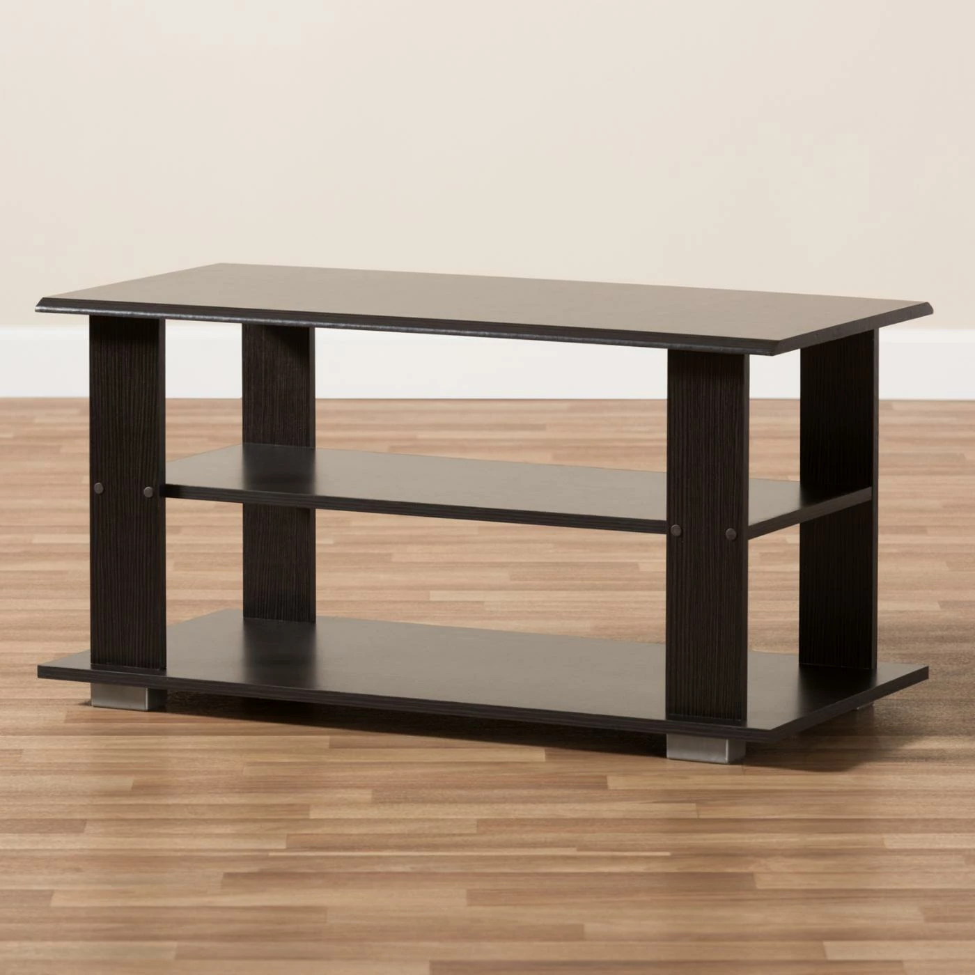 The Baxton Studio Joliette Rectangular Coffee Table employs clean, simple lines for contemporary charm. This coffee table is crafted of engineered wood for enduring use. A dark espresso finish highlights the faux woodgrain detail for an authentic appearance. Two lower shelves offer ample storage space.