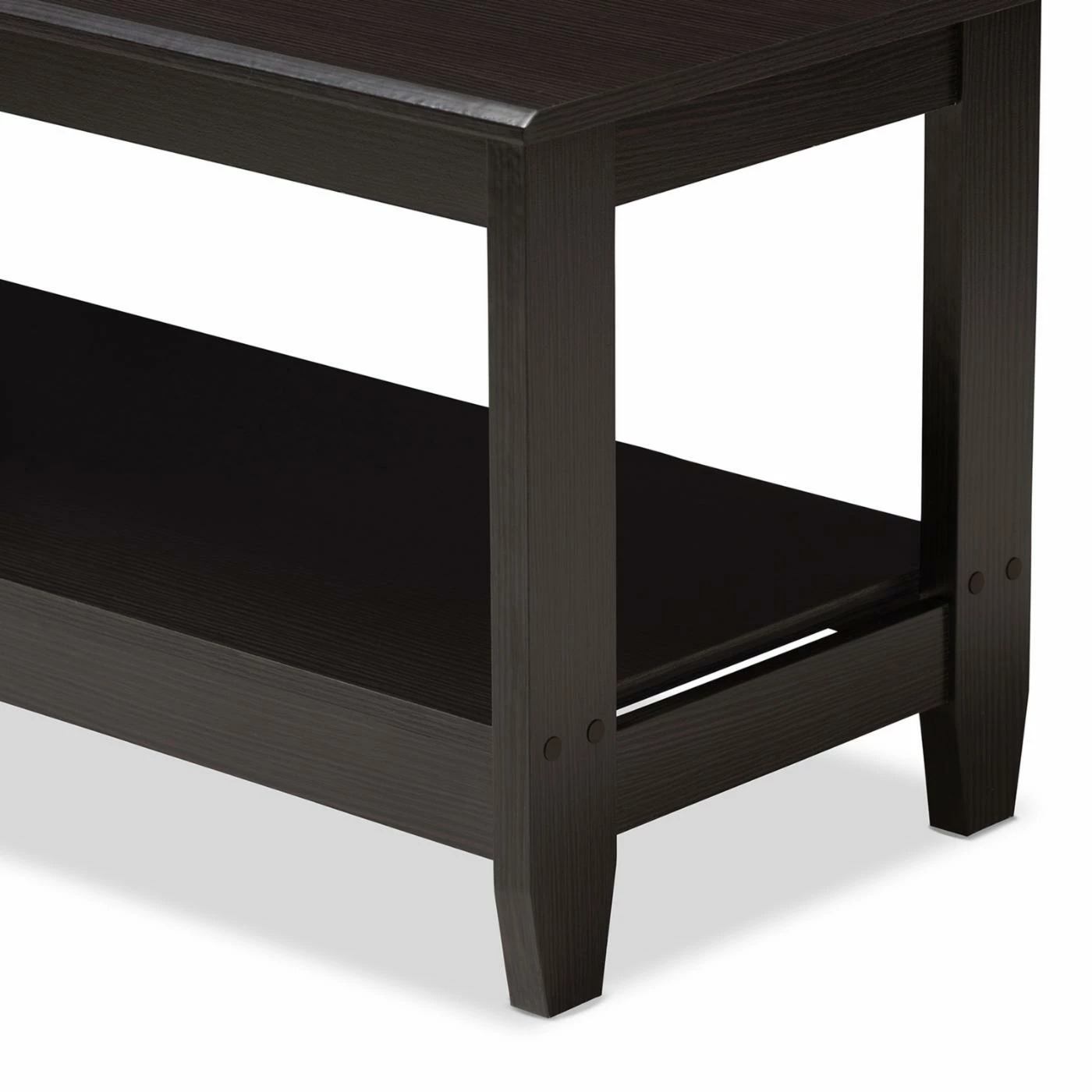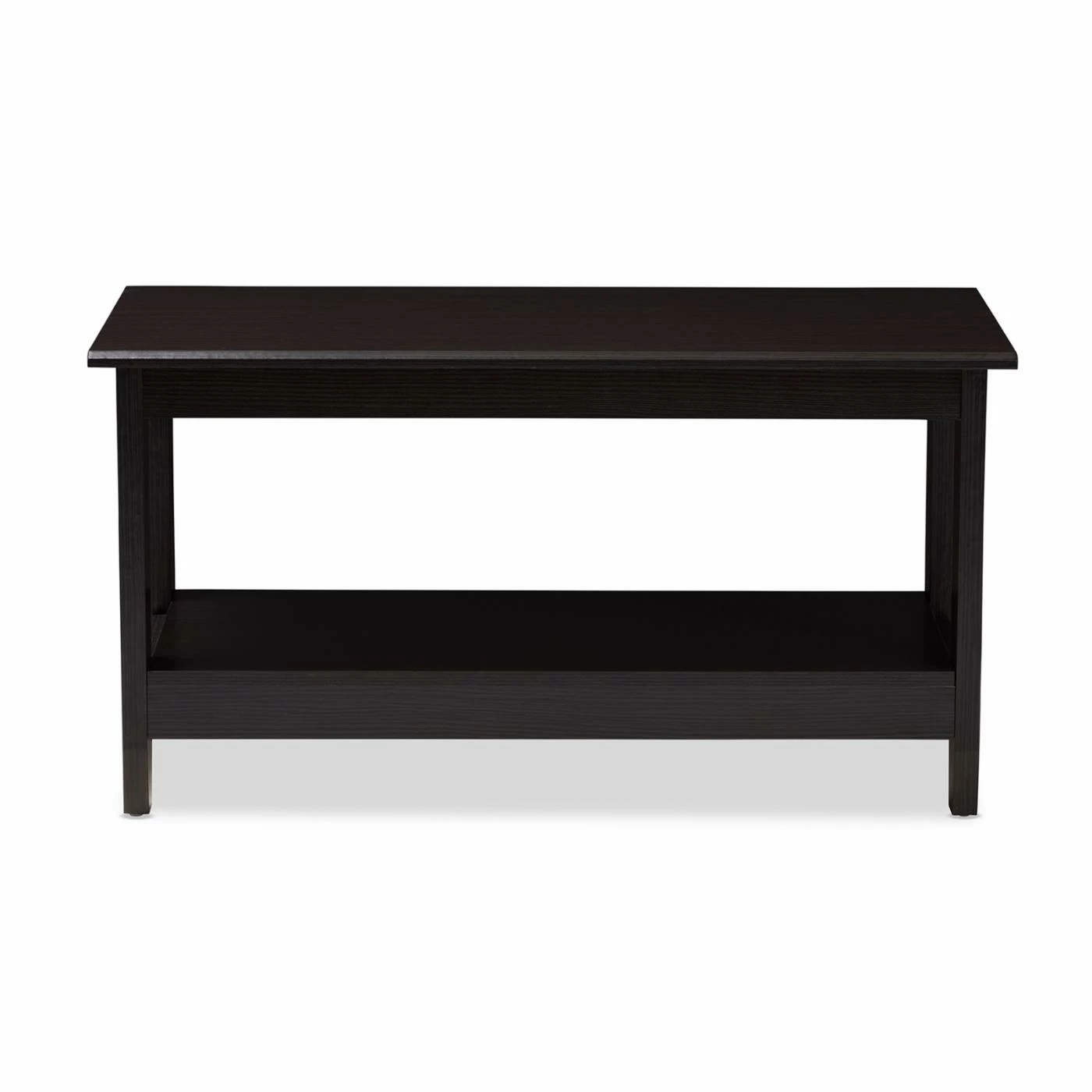 The Baxton Studio Malena Rectangular Coffee Table coordinates with multiple dΓ©cor types with its sleek and simple modern aesthetic. It boasts solid engineered wood craftsmanship for lasting use. A deep espresso finish lends elegance. This coffee table is complete with a massive lower shelf for convenient storage.