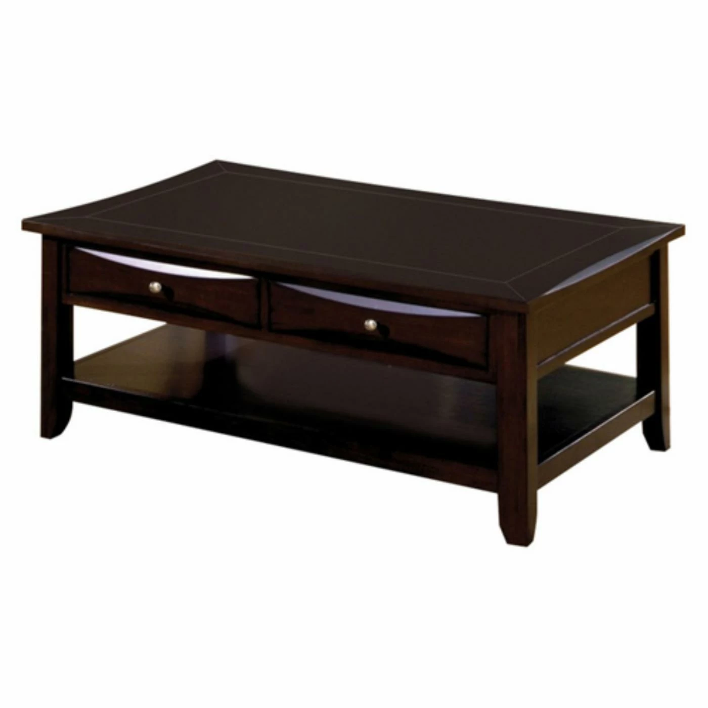 Underscore the stand-out style of your home with the Benzara Baldwin Rectangular Coffee Table. Make an impression with the espresso-finished wood adding durable appeal to your home or office. Two drawers and a shelf in the base give you plenty of storage options. Its transitional look adds a twist of personality to any dΓ©cor.