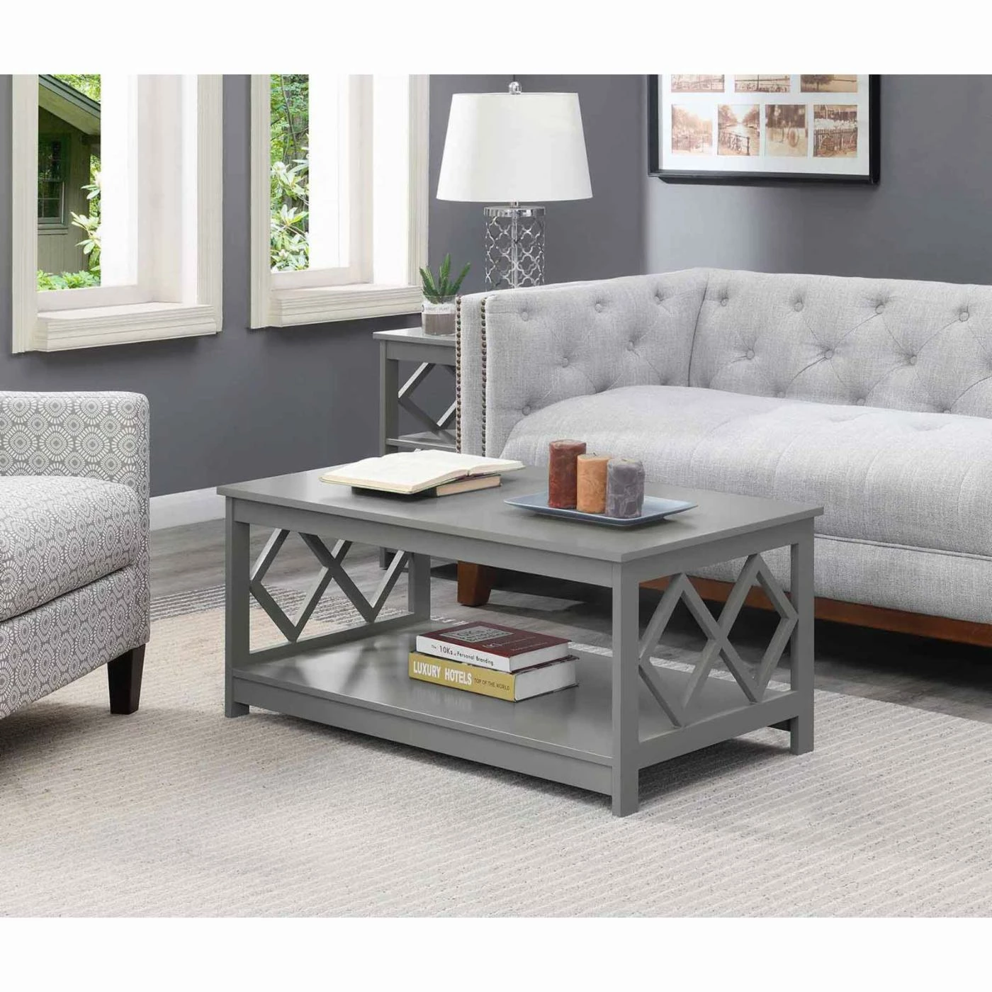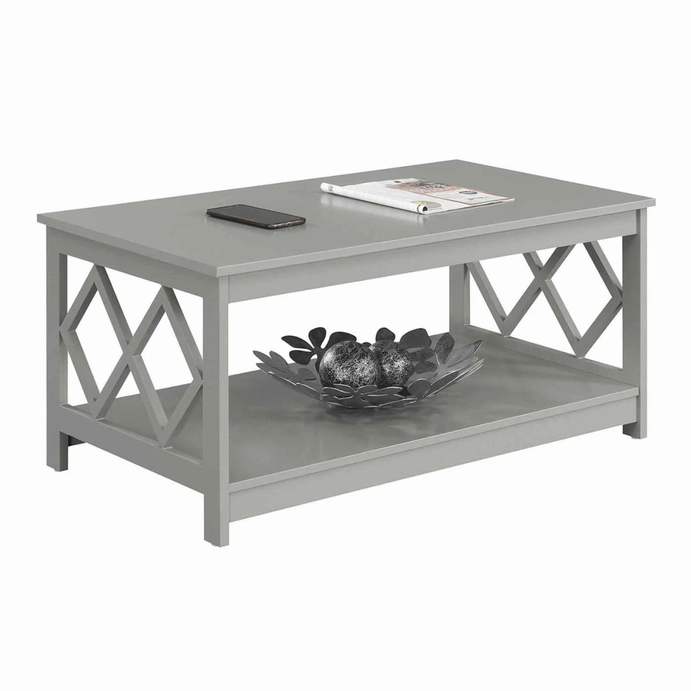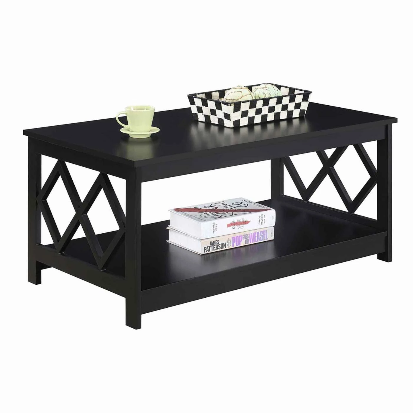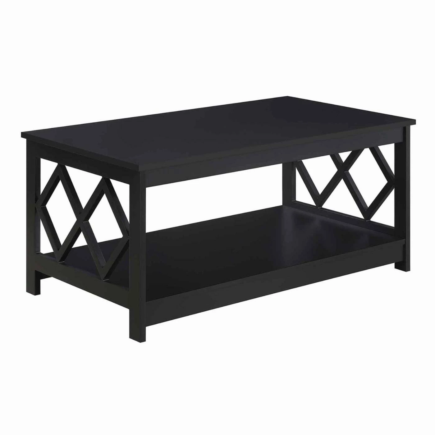 Enjoy a relaxing afternoon with a cup of coffee and a magazine thanks to the Convenience Concepts Diamond Coffee Table. This rectangular coffee table is constructed of engineered wood. Two diamond cutouts on either side of the table. An open bottom shelf provides a convenient storage space. Choose from available finishes to find the Convenience Concepts Diamond Coffee Table that works best for your living room.