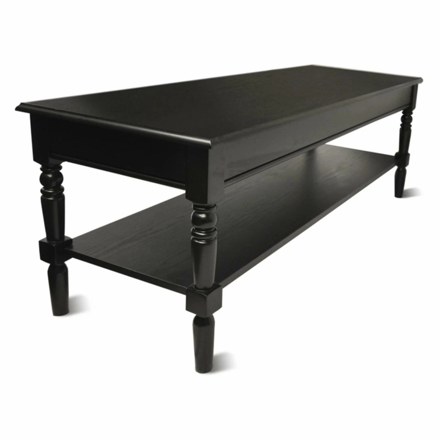 Serving up some style, the Convenience Concepts French Country Rectangle Black Wood Coffee Table with Shelf has a classic design you’ll love. This wood coffee table comes in an eye-catching black. You’ll love the ample storage space this table has with its pair of shelves.