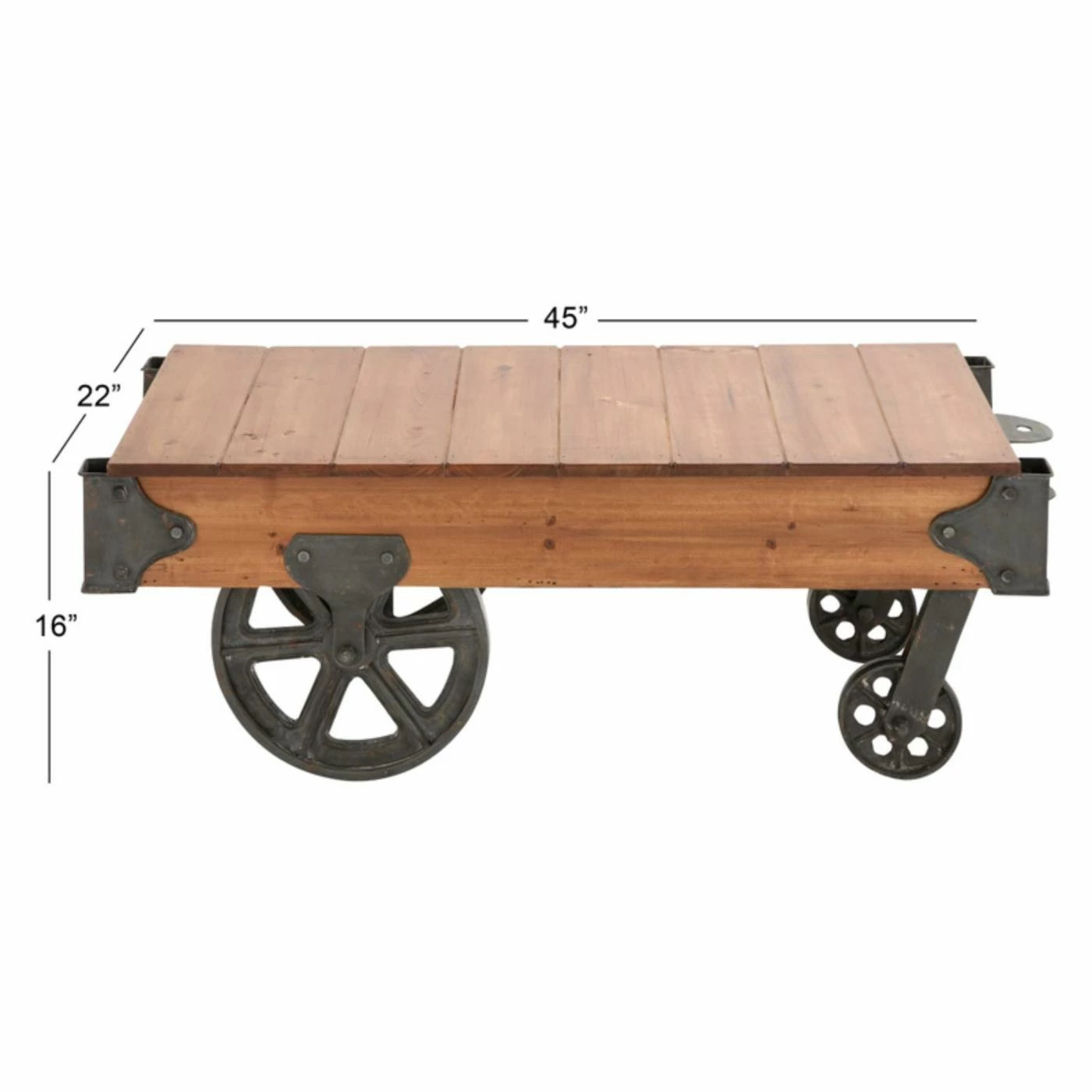 Metal casters enhance the industrial appeal of the DecMode Wood Coffee Table. This decorative coffee table is a chic addition to your casual living room.