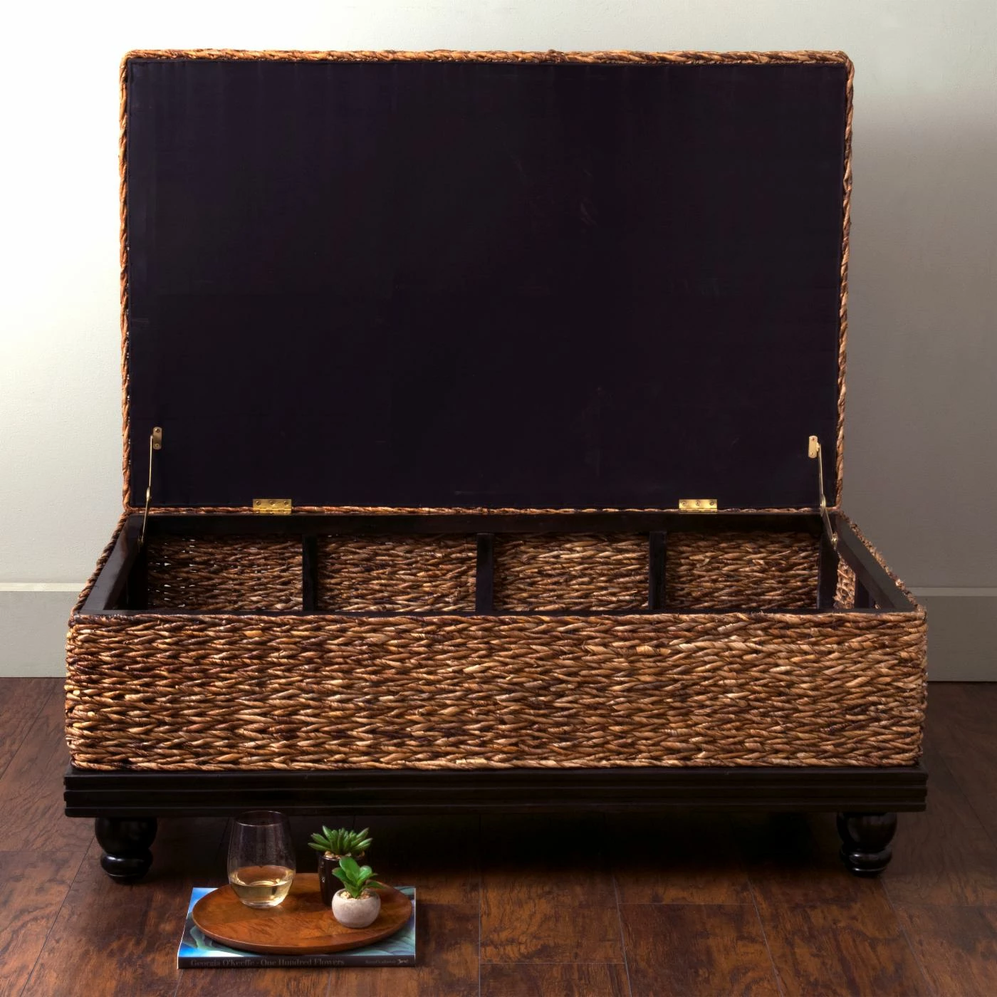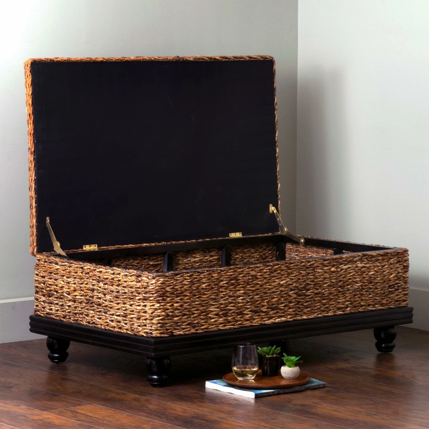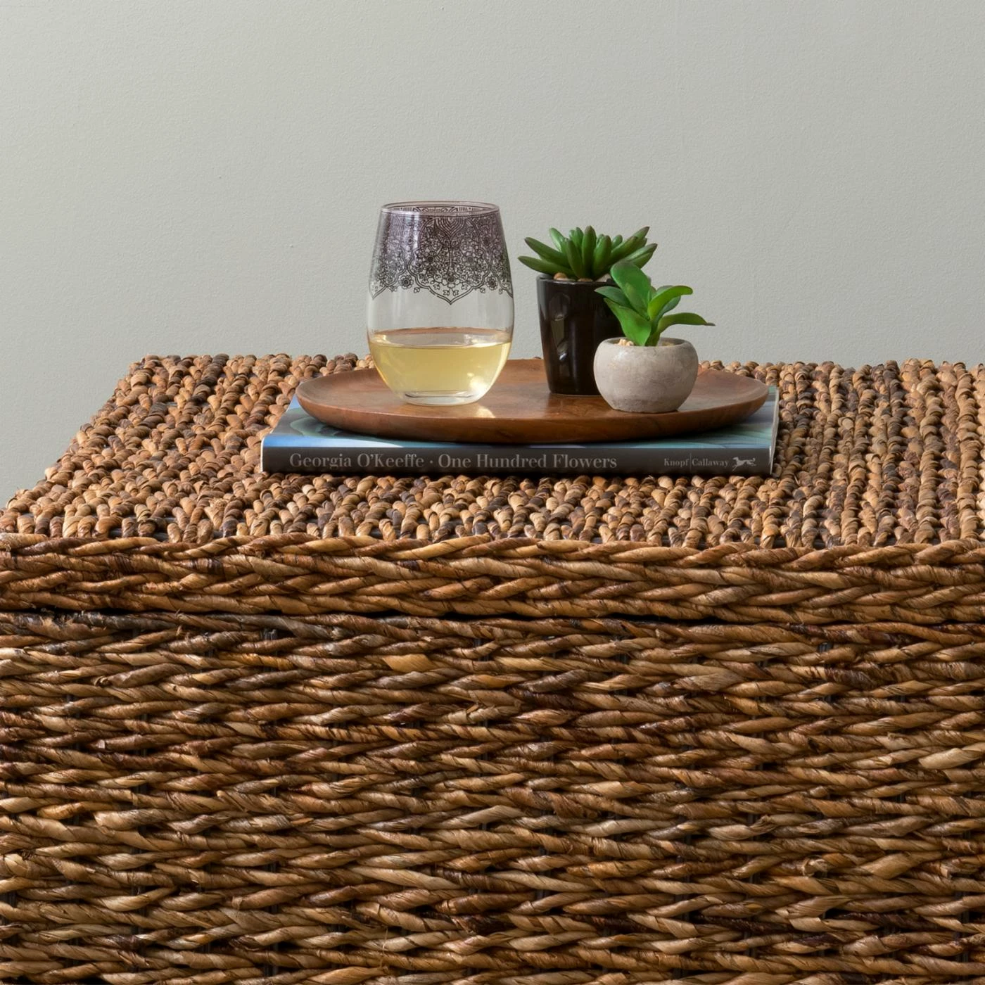 The East At Main Arbor Abaca Textured Coffee Table is more than just a versatile piece for your living space or bedroom. The top of this rattan and wicker coffee table lifts up to reveal roomy space for blankets, pillows, and more. A dark acacia wooden frame offers stability and support. This coffee table is covered in a natural finish for a charmingly unadorned look.