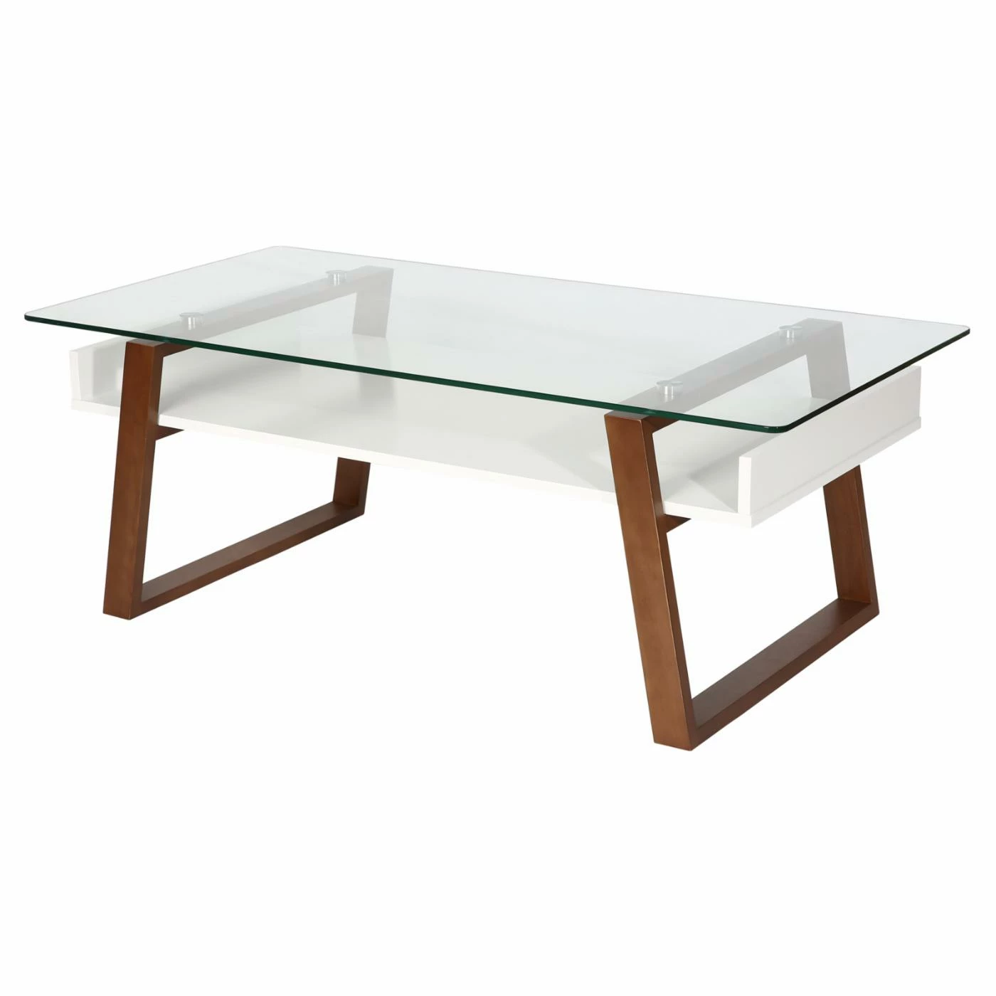 Give your living room design a tremendous new look with the EdgeMod Segovia Glass Top Coffee Table. This massive coffee table provides plenty of space for both storage and display. Its rectangular top is made from clear tempered glass. Below the top is an open shelf area. The shelf and the squared legs are both constructed from thick rubberwood. Choose from the available color options.