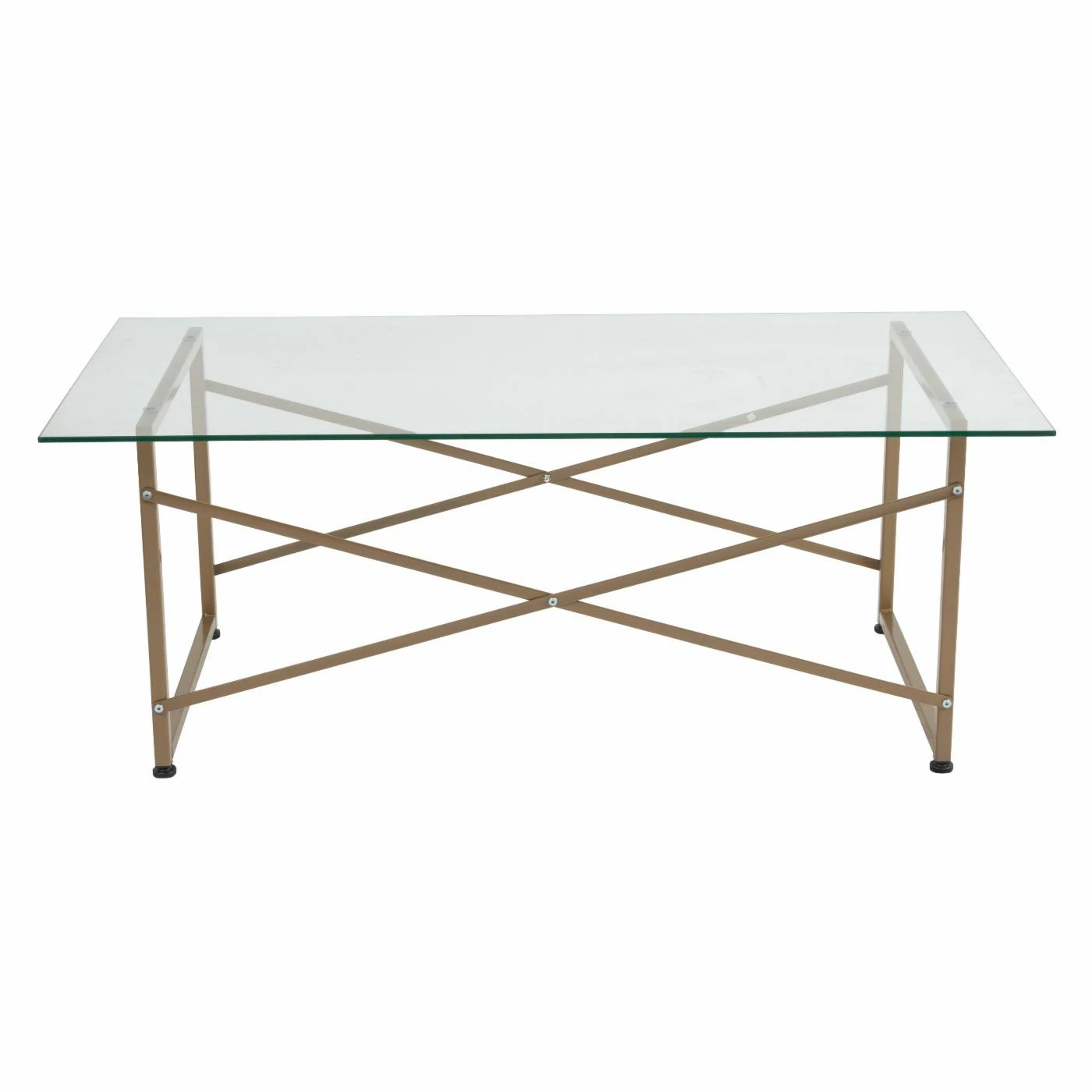 Bring your living room a modern upgrade with the Flash Furniture Mar Vista Glass Coffee Table with Matte Gold Frame. The gold-finished metal frame and clear glass surface provides a dramatic appearance. Adjustable floor glides keep the table level on uneven floors.