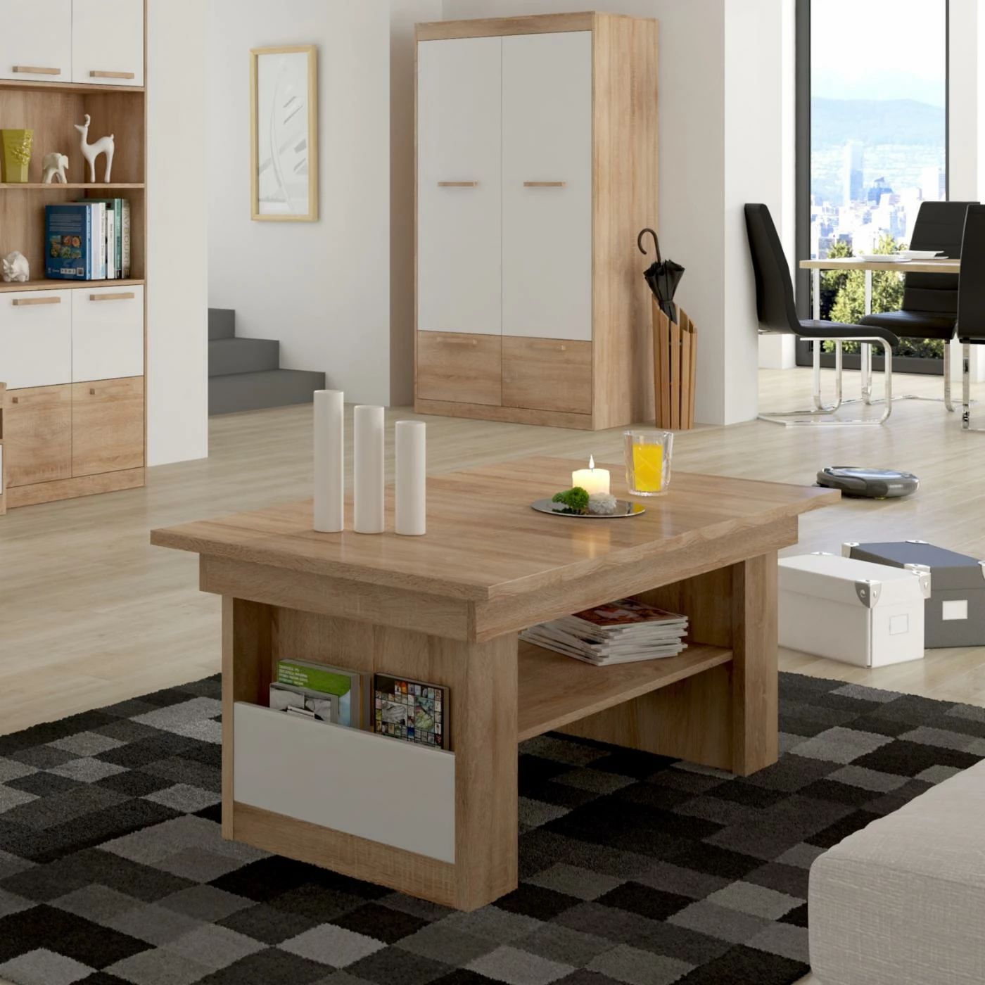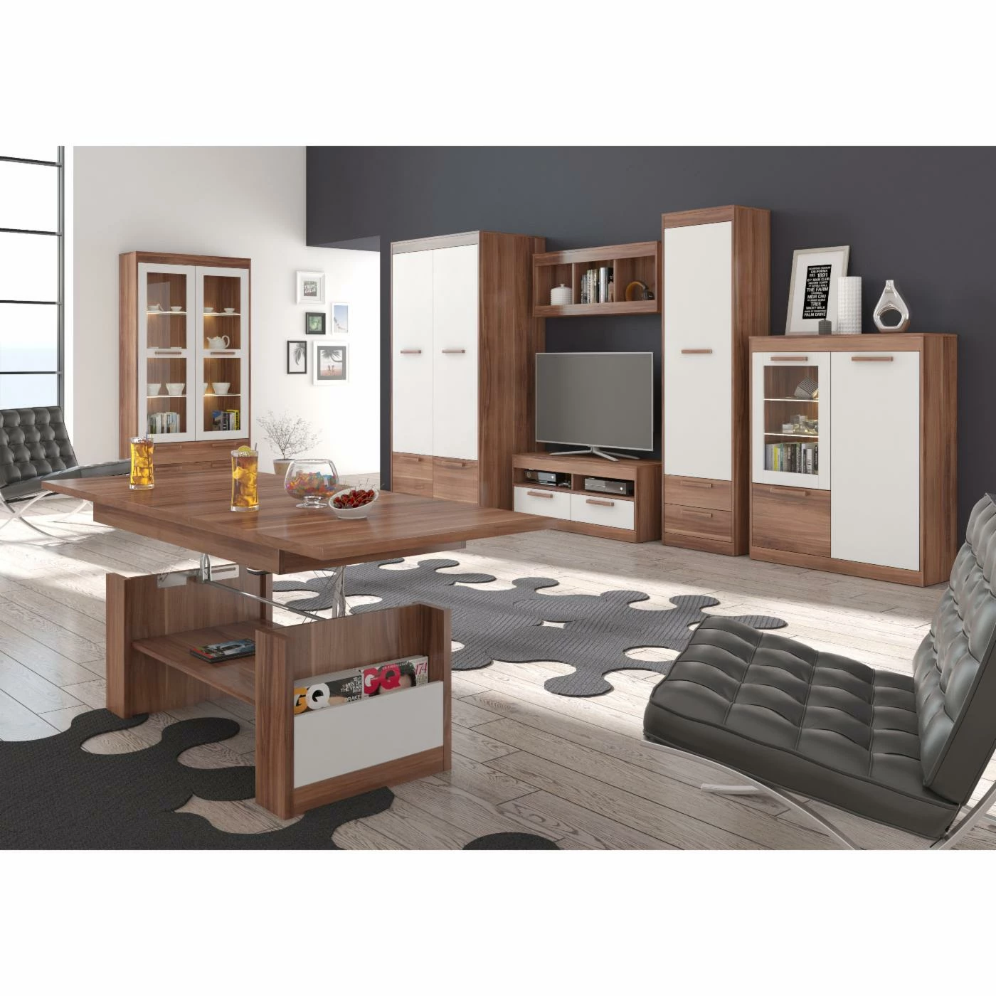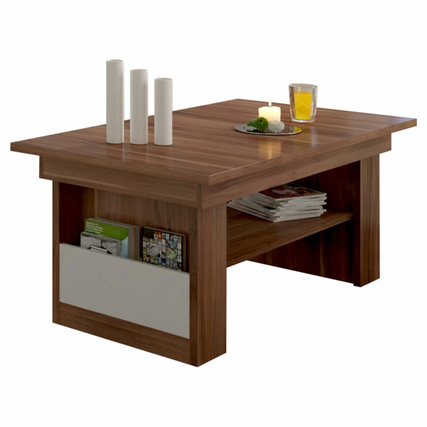 The Furniture.Agency Maximus Adjustable Coffee Table is as versatile as it is stylish. This coffee table boasts a top that extends to a variable height with the included mechanism, and to a longer tabletop with the included extension. A handy magazine rack can be found on the outside of either leg, while the center open shelf is perfect for remotes, decor, or art books. Choose from available finishes to best complement your modern decor.