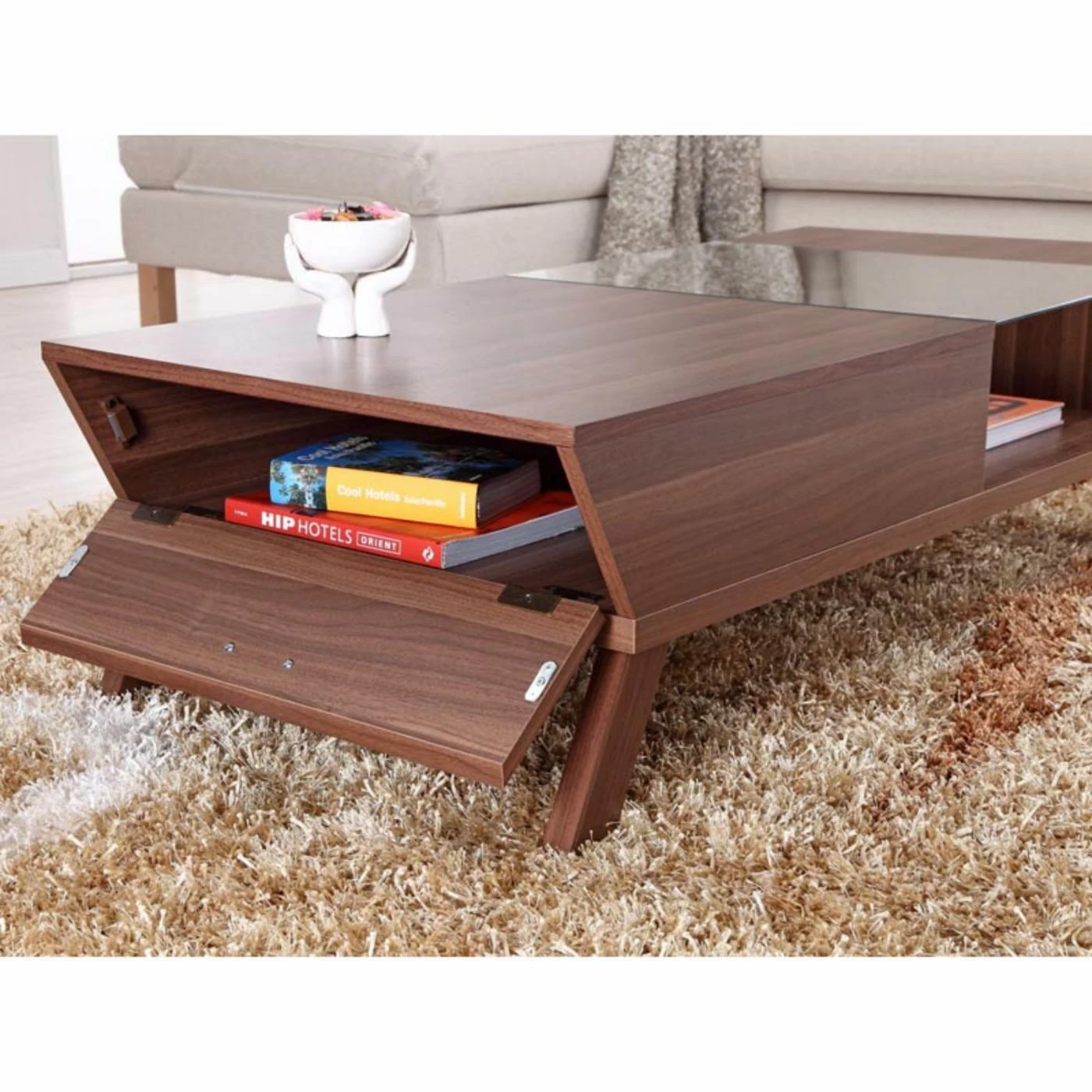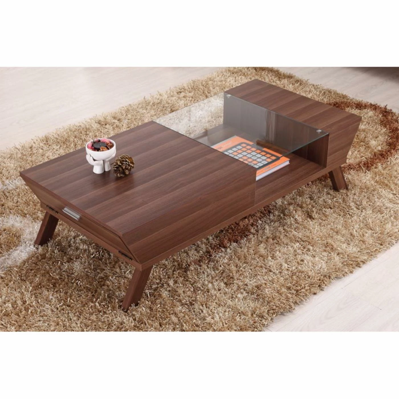 A coffee table is about more than coffee. It’s also a casual workspace, a weeknight dinner table, a conversation hub at a cocktail party. The Furniture of America Baxter Modern Glass Top Coffee Table – Medium Wood is about all of that – and probably more – with its versatile design. Crafted with durable wood, medium fiber board, strengthening veneers, and crystal-clear glass, this contemporary coffee table starts with a spacious tabletop where you can spread out with laptops or lunch plates. On either end, drop-down panels reveal interior storage space for magazines, CDs, remotes, and cords. To one side, a glass-topped open shelf is the spot to display photos or favorite books – or stash a bowl of nuts during family get-togethers. And the warm wood pattern finish, angled legs, and sleek hardware – those are all about style.