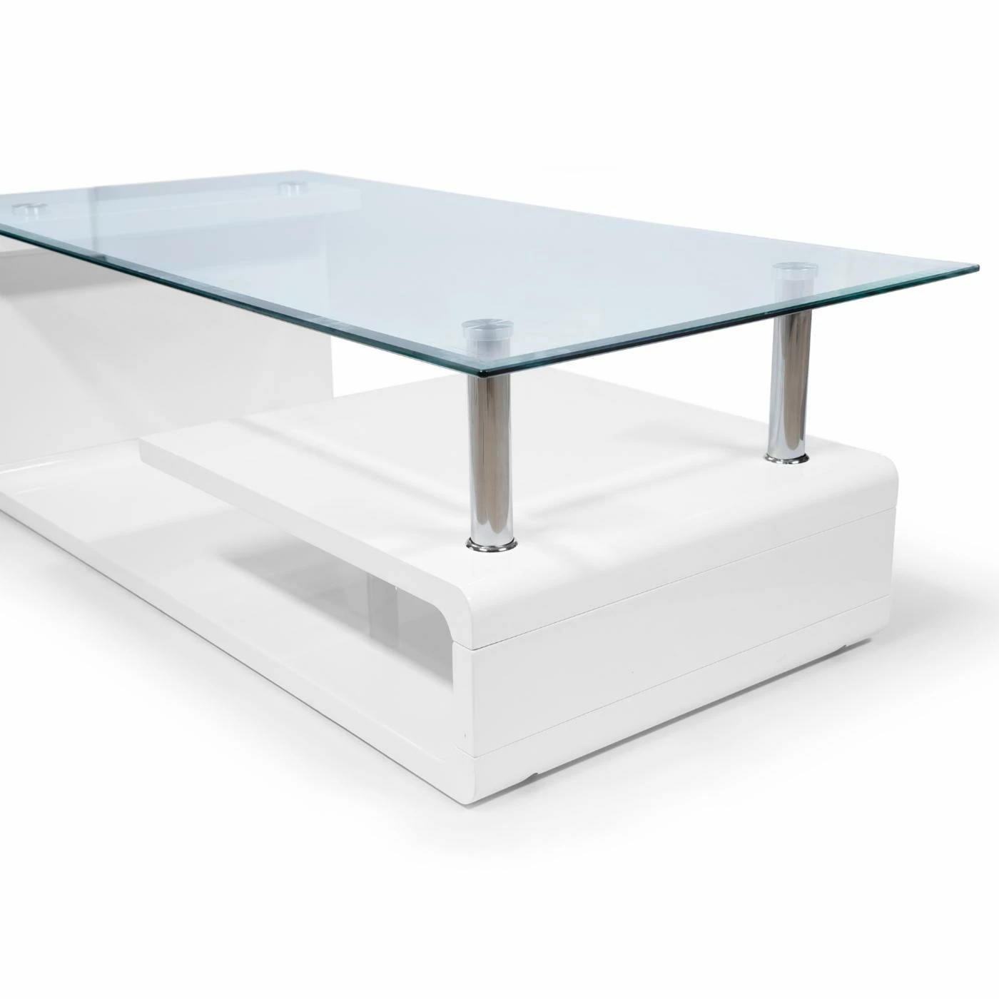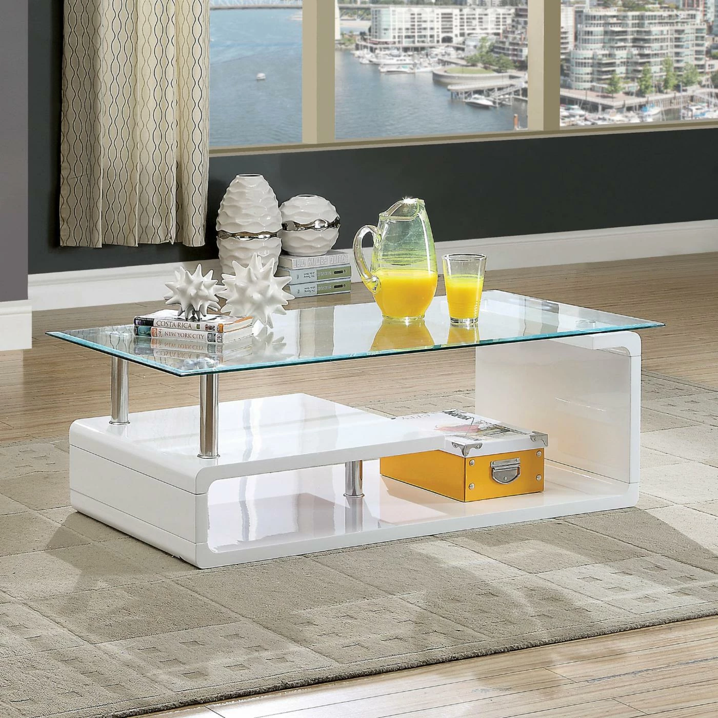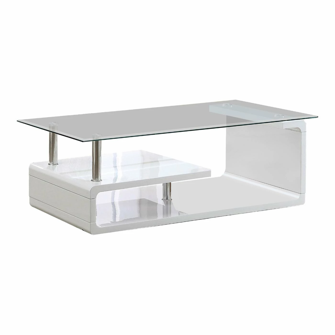 The Furniture of America Neko Glass Top Coffee Table is the perfect embodiment of a sleek, contemporary aesthetic. The curves of the base are contrasted by the straight lines and gleaming chrome of the supports. Across the top is a clear sheet of tempered glass that adds an airy feel to the while design as it provides you with a durable, low-maintenance surface. The base of the table is finished in a high-gloss shade of white that’s going to easily work into any modern home decor scheme.