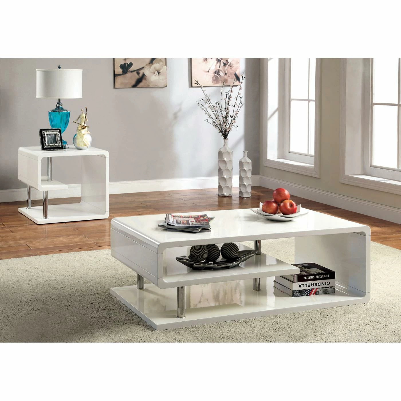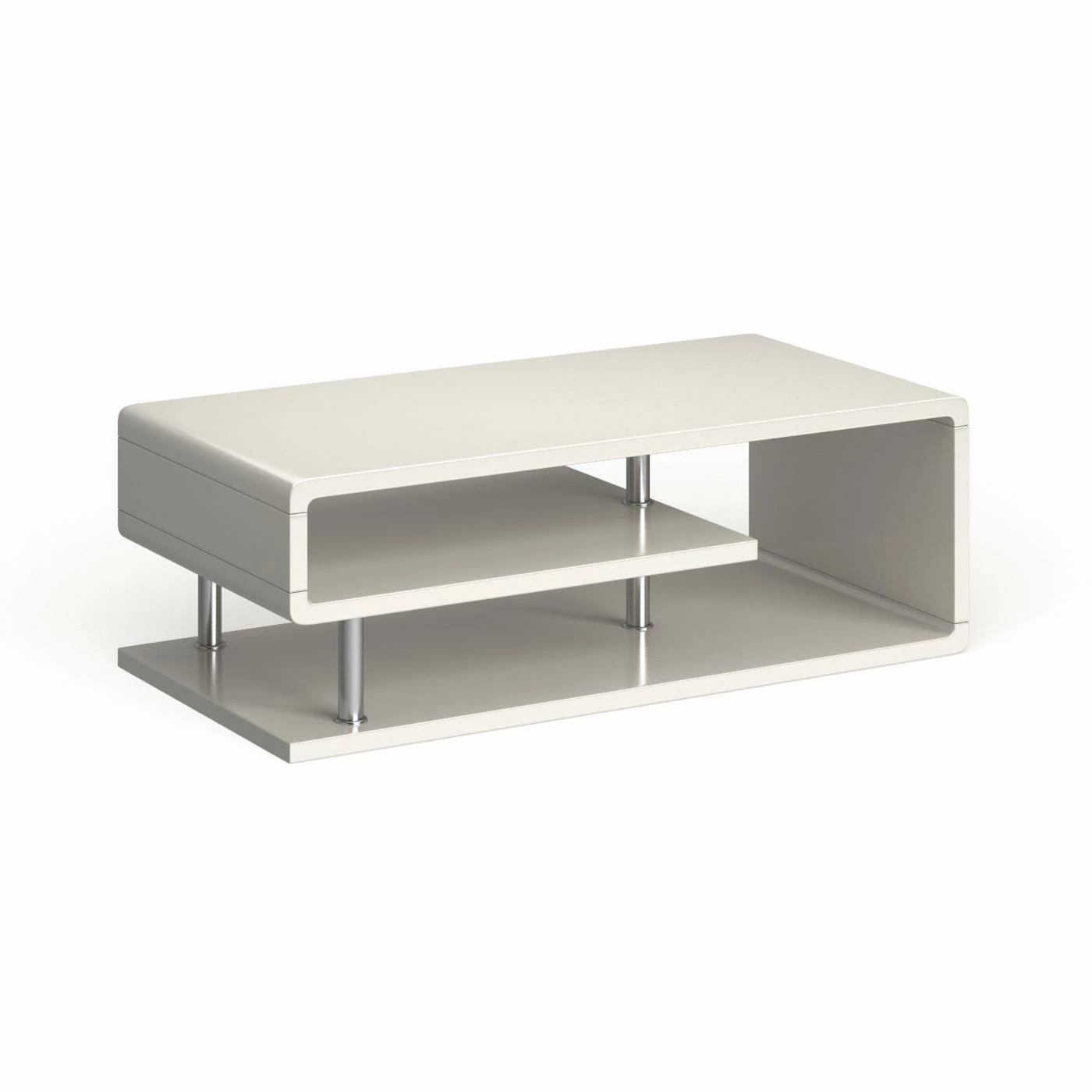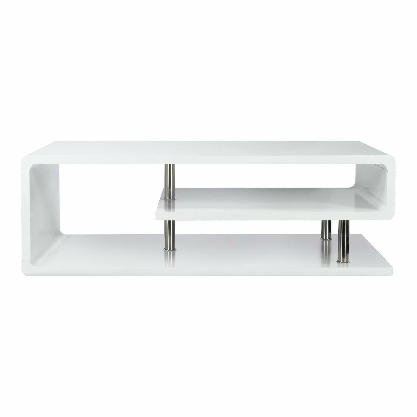 A curvaceous beauty, the Furniture of America Rocca Modern Tier Coffee Table – White features a sinuous shape that completes your modern living space perfectly. This coffee table comes in a high-gloss white lacquer coating. Its curved design creates open shelving and the polished chrome post legs add stability and high style.