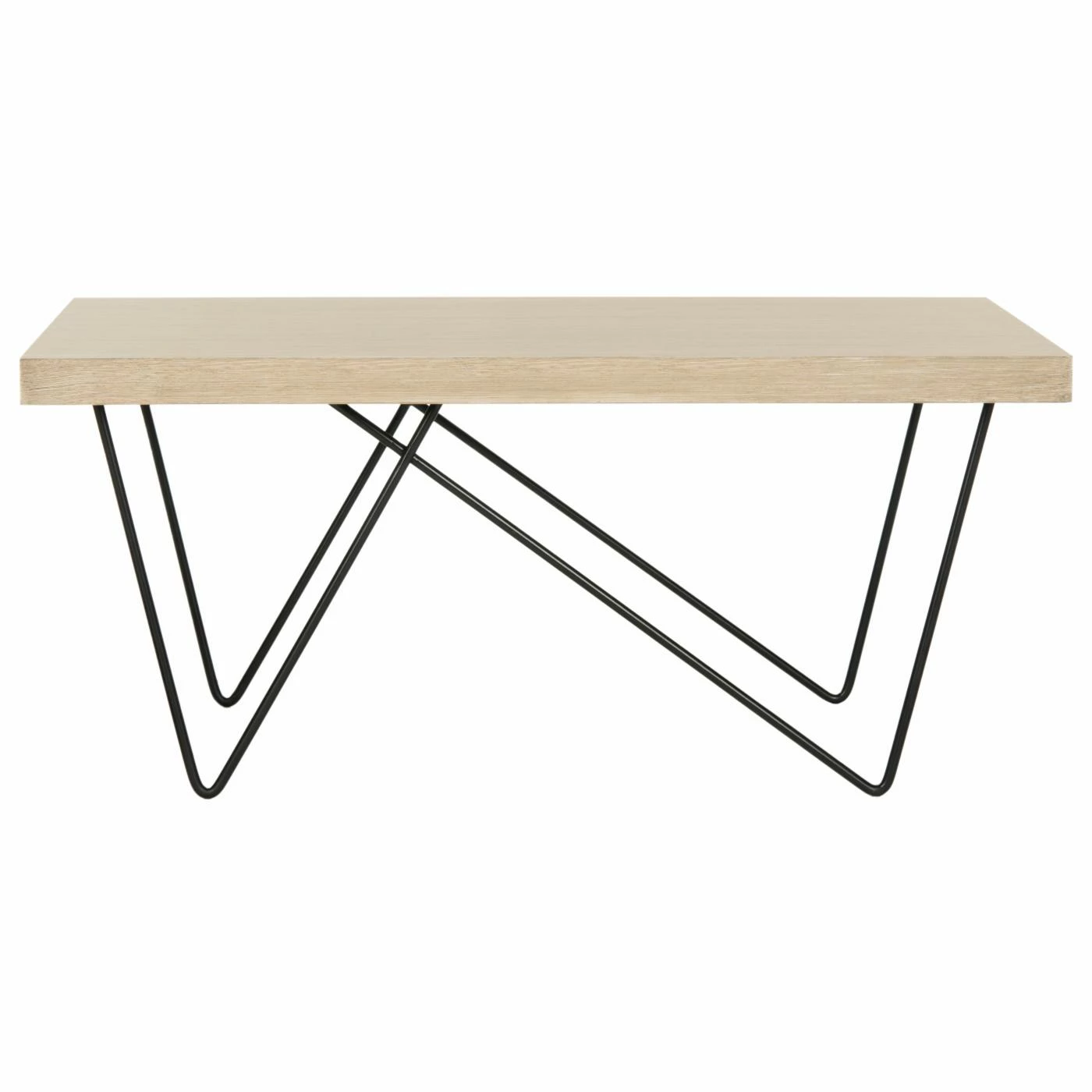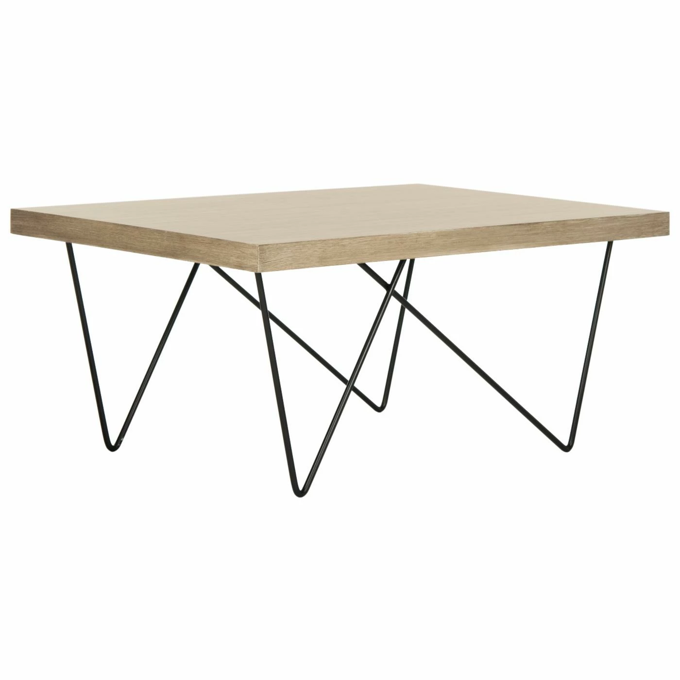 Mixing small and large hairpin legs into one design, the HN Home Albini Mid-Century Modern Retro Wood Coffee Table instantly catches the eye. The sleek, minimalist table features a sturdy iron base and a simple, rectangular engineered wood top with a pleasing wood grain. Adding to the bold look of the piece is the two-tone light gray and matte black finish.