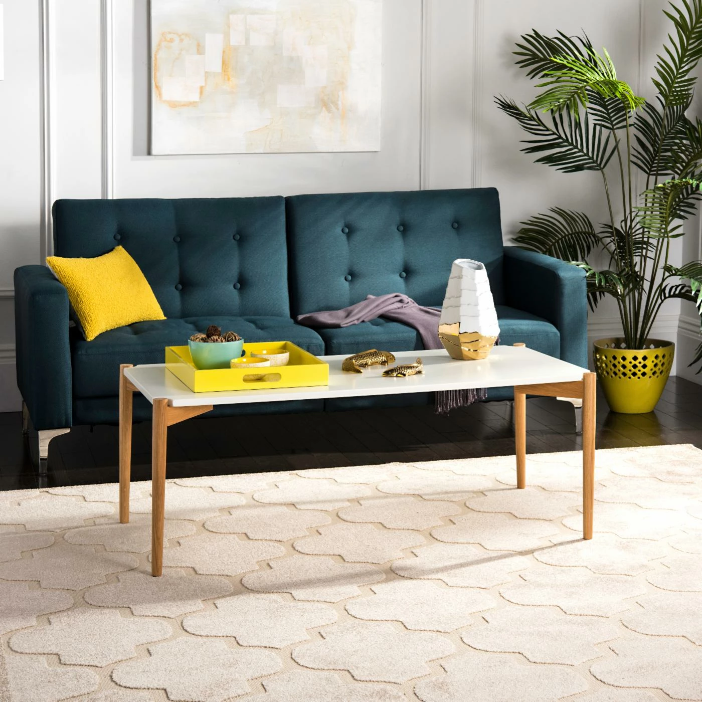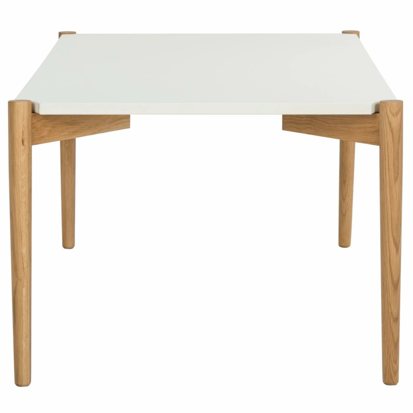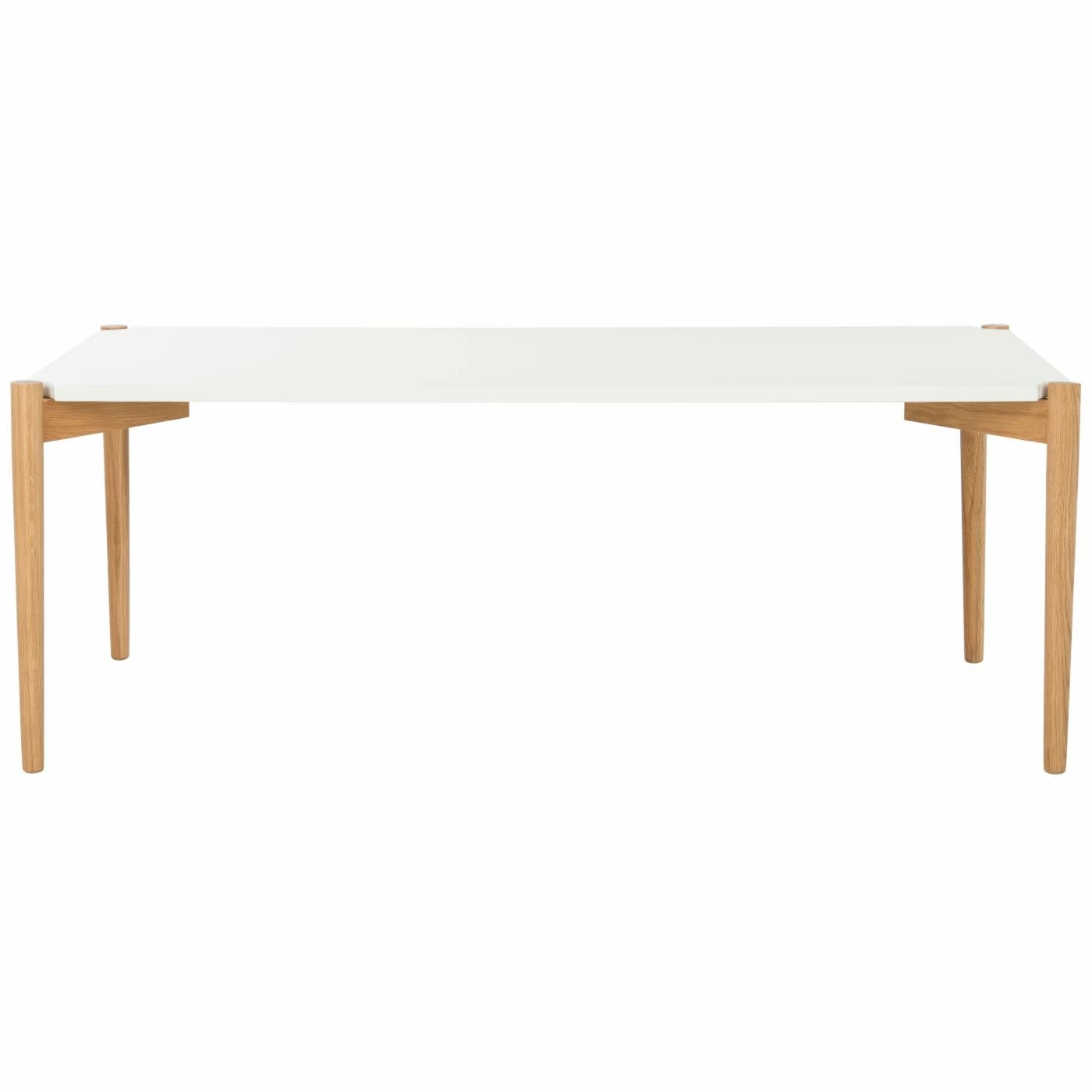 Bring a bit of the Bauhaus to your interior with the HN Home Soane Mid-Century Modern Rectangle Coffee Table. Inspired by mid-century architecture, this sleek, white oak lumber table features a rectangular top and simple straight round legs. A two-tone white and natural finish calls attention to the differences between the straight lines of the top and the soft curves of the base.
