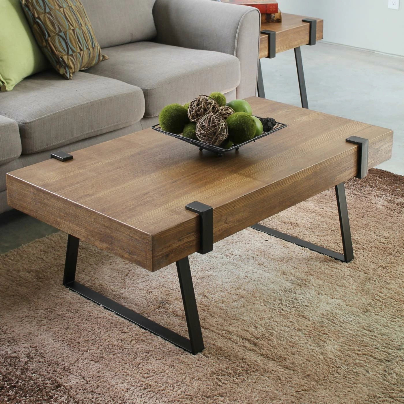The beauty of the International Caravan Hamburg Contemporary Wooden Block Coffee Table is in the cleanliness of its design. The substantial hardwood block tabletop’s shape shines in a simple, natural finish. Black metal bracket-top supports at each side, bolster the top without interrupting its line. This coffee table is modern, industrial, and a must-have. Assembly is required and all hardware is included.