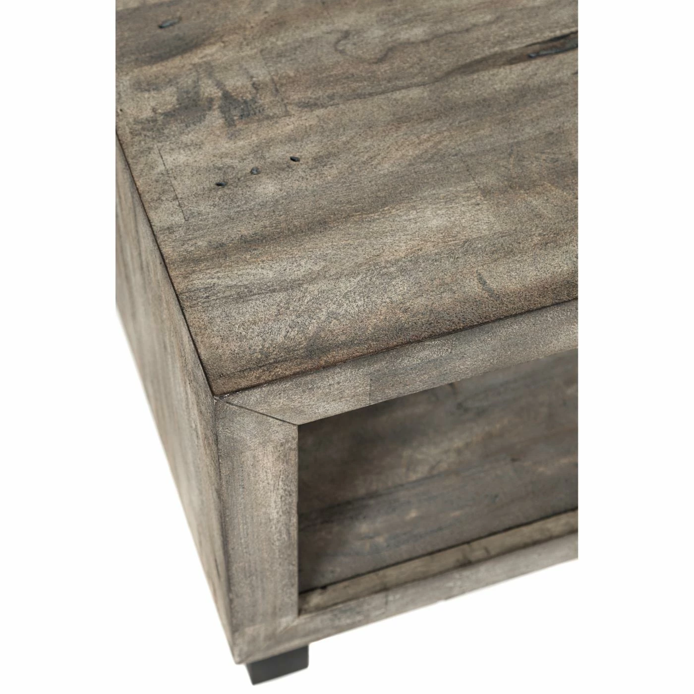 Clean, modern lines mark out the Jofran Mulholland Drive Cocktail Table as an instant contemporary classic. This cocktail table provides space for books and display items on its integrated low shelf. Solid wood wears a distinctive distressed gray finish.