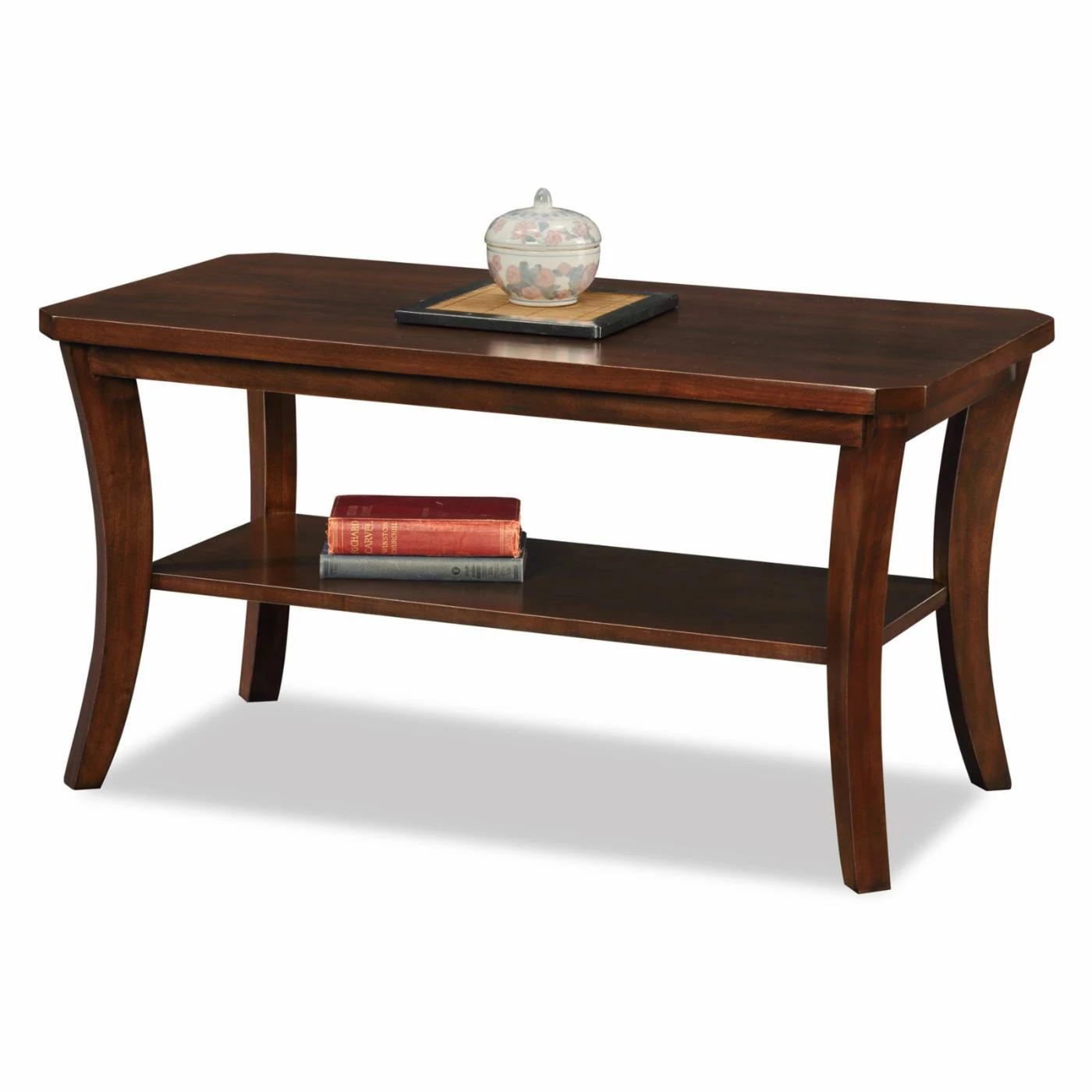 You’ll love how the Leick Home Boa Condo/Apartment Coffee Table provides convenient table space without overwhelming your entire living room. It’s all thanks to the apartment- and condo-friendly compact footprint. The coffee table is crafted of solid hardwood with a hand-applied chocolate cherry finish, which perfectly complements the curved saber legs. A lower shelf and one-inch-thick tabletop provide storage.