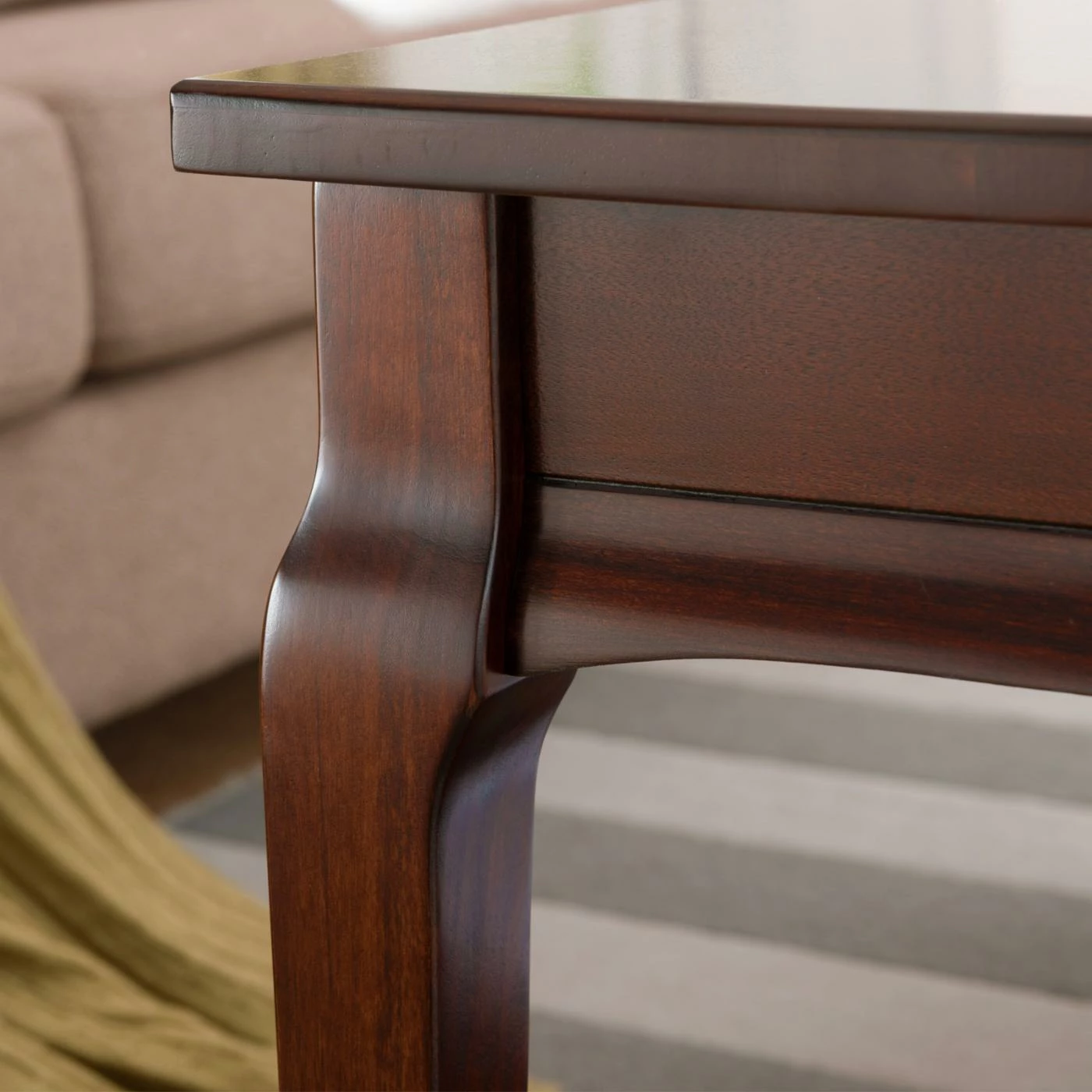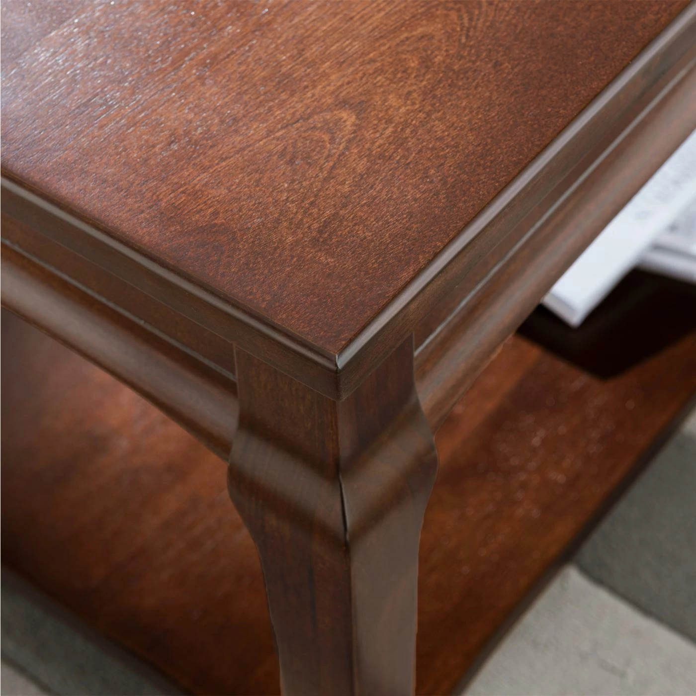 A few extra curves and plenty of contours give the Leick Home Stratus Coffee Table a posh style that’s going to make it a perfect piece for the center of your room. The body of this table is made from high-quality hardwood with an exterior of select cherry veneers. The cherry finish brings out the grain and texture of the materials while giving it a traditional sensibility. The wide top sets on a shallow apron, and a as the legs curve outward, a lower shelf gives you room for a few coffee table books or decorative objects.