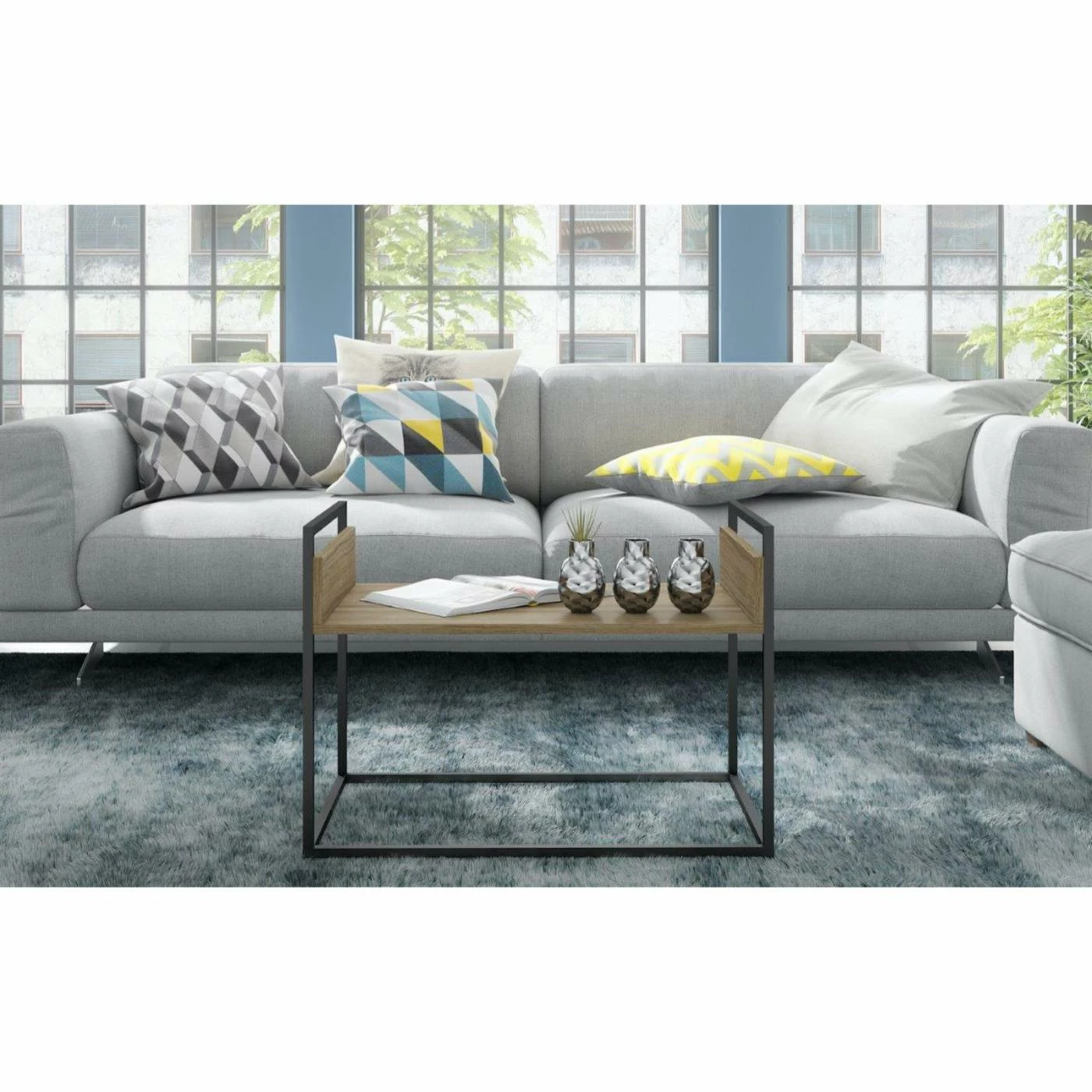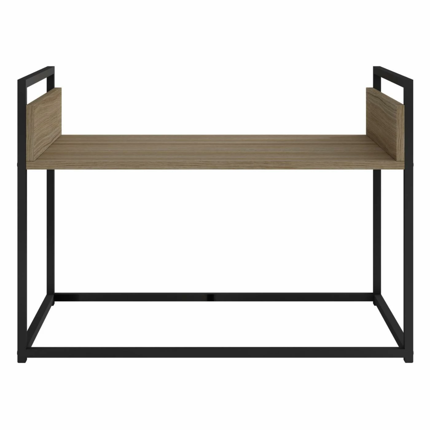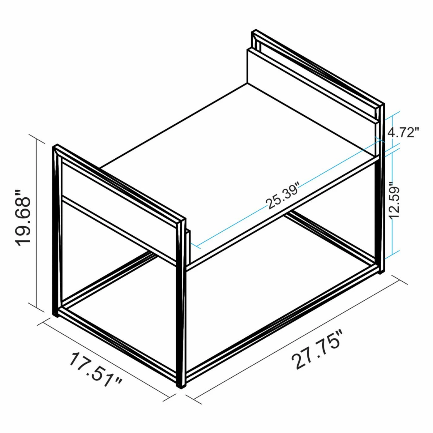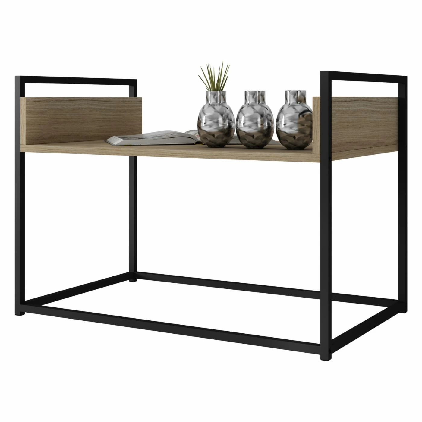 With its open, geometric frame and tray style top, the Manhattan Comfort Ellis Coffee Table is a perfect mix of industrial and chic. The melamine top features a dark oak finish that plays well with its black metal framework. This coffee table works well in front of sofas or loveseats.