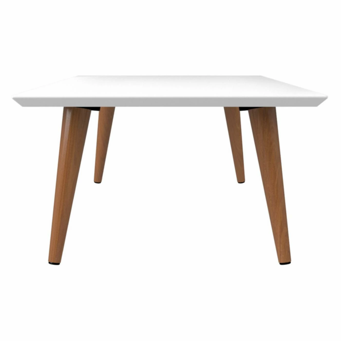 The brilliantly simple Manhattan Comfort Utopia High Rectangle Coffee Table stands on splayed solid wood post legs that lend a mid-century vibe. This engineered and solid wood coffee table has a rectangular shape that works well in front of sofas or loveseats. Choose from available finish options.