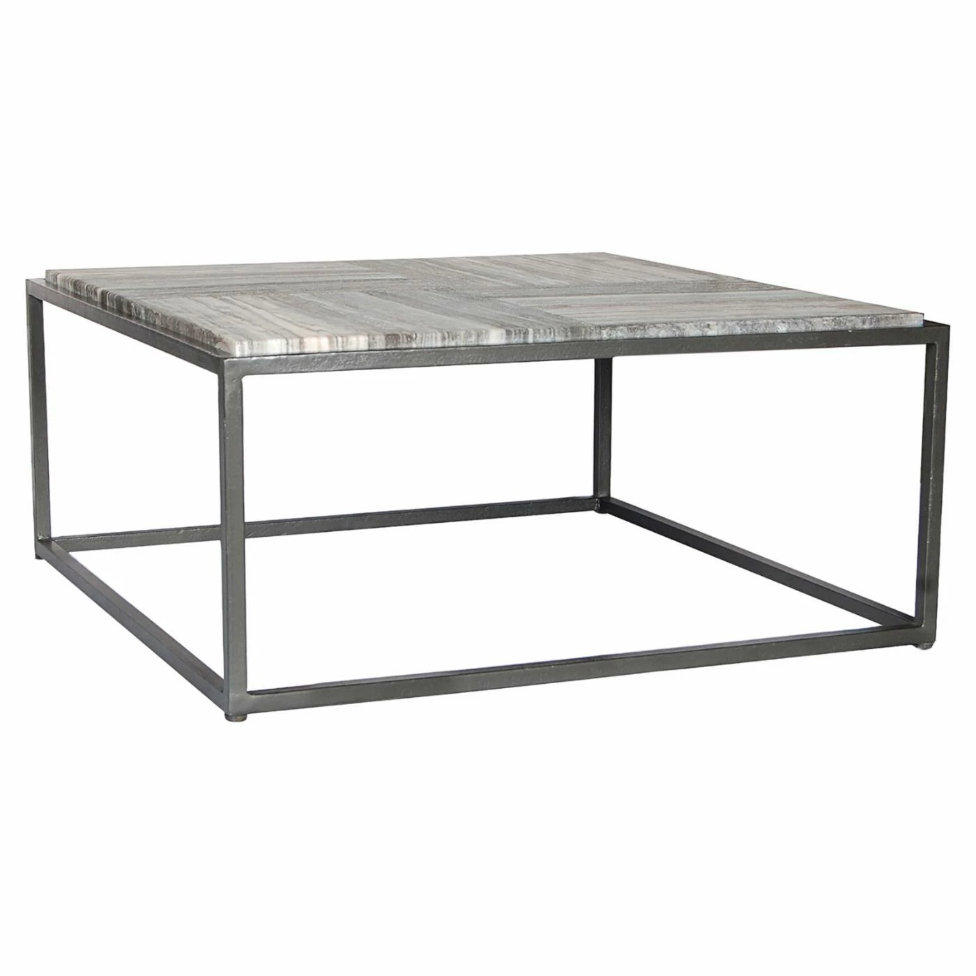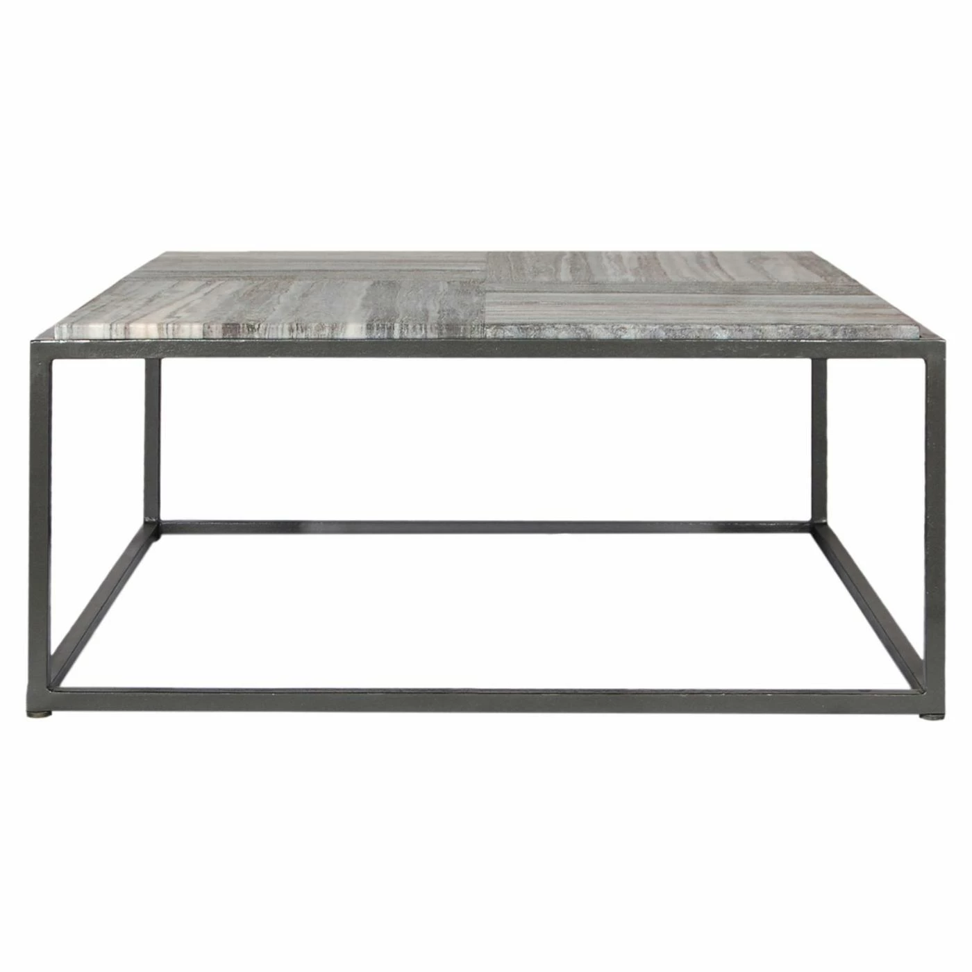 Ideal for small contemporary seating areas, the Moes Home Collection Winslow Marble Coffee Table has an airy, light quality that creates the illusion of a larger living space. The table rests on an open base constructed out of heavy-duty blackened iron. A genuine charcoal gray marble top adds a touch of organic elegance.